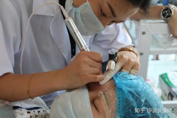 點刺:在眉頭部位輕輕地點刺,針點要比眉毛的其他部位稀疏一些。要點:手法要輕、進針要淺、保持均勻,同時速度要慢。第一遍後,第二遍補點空白,兩遍就好。