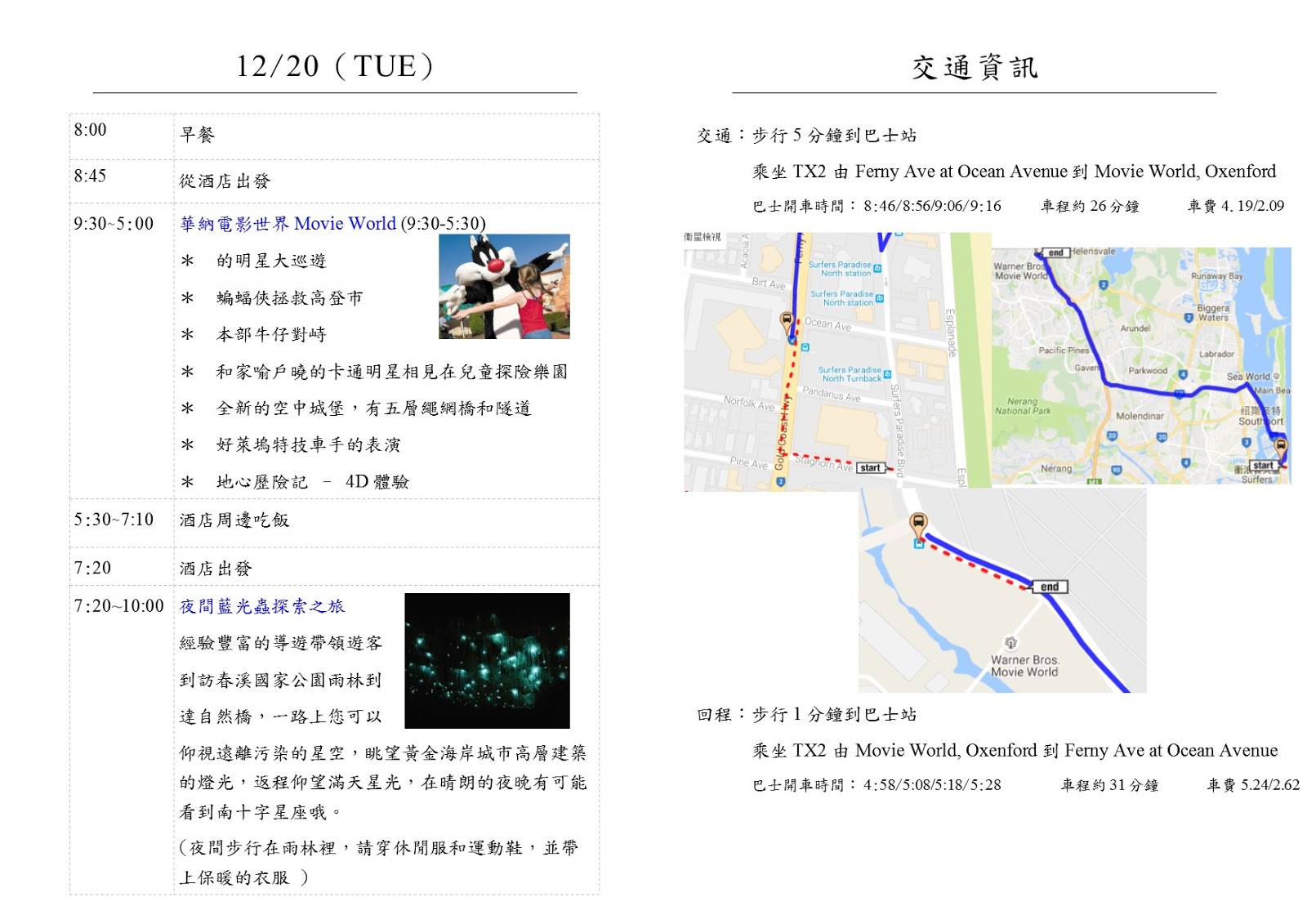 呼,終於完成了2016年的澳洲行的遊記,拖了足足五個月,最後寫了兩萬字,很瘋狂。好啦,事不宜遲,現在就開始吧。 這次聖誕旅行,最初是計劃去新加坡+民丹島,我也已經跟旅行社問好價了,正打算翌日就下訂時,忽然看到新聞說新加坡瓦解了恐佈份子打算在民丹島向其襲擊的威脅,不想冒險便決定改地方,但該改到哪裏呢? 推翻了幾個動議之後,最終決定去澳洲,其實早在七、八年前已計劃了一次澳洲之行,連行程也訂好了,但後來因為機票漲價而放棄,所以這次算是補回當天的遺憾吧。 【事前準備】 決定了去澳洲,還要決定去甚麼城市。當年原本是安排了去悉尼+黃金海岸,因為我喜歡陽光與海灘,所以黃金海岸是膽,絕對不會變。問題是,除了黃金海岸,還要去哪個城市呢?悉尼、墨爾本、開恩茲也在考慮之列,墨爾本是我最早放棄的,雖然很多朋友推介墨爾本,但翻看有關旅遊資訊,找不到任何令我心動的行程。 悉尼和開恩茲之間各有各吸引之處,我一直下不定決心,而最後的決定因素是發現香港航空有直航黃金海岸和開恩茲的航班(如果乘搭其他航空公司,基本上都是直航悉尼或布里斯本,再轉折去黃金海岸,回程也一樣要轉折一輪),如此方便,機價亦比其他航空公司便宜,便一錘定音。去開恩茲可以去大堡礁,一直聽說大堡礁很快會消失,所以越快去越好吧。 就這樣決定了,黃金海岸+開恩茲,原本打算去10-11天,但在編排行程時發現實在有太多活動想參與,結果一加再加,將行程加到13天。這是我們去過最遠的地方、最長的行程。為了隆重其事,我甚至決定自製一本旅遊小冊子。 安排一次旅行,往往先由訂機票和酒店開始。機票訂好了就要選酒店。 每次選酒店也是最煩惱的事,選擇這麼多,該怎麼決定呢,地理位置、酒店照片、旅客評語都是重點,但最重要還是看自己的預算,住不起最豪最貴,只想選性價比高的酒店。之前有朋友推介在澳洲入住Apartment,可以煮食可以洗衣服,但經過一番考量,最後還是選擇酒店,黃金海岸選了QT Gold Coast,而開恩茲則選了Pullman Cairns International。兩間酒店不是不好,但總有一點少問題,下次有機會再去大概不會再選這兩間酒店了,詳見後文。 定好機票和酒店後,就開始安排行程。在網上找到有很多可以安排當地遊的旅行社,很多旅行社、很多行程,花多眼亂,對有選擇恐懼症的我來說真的很困難,如果還要格價選到最便宜,我肯定會抓狂,所以決定盡可能從一間旅行社選好,減省不必要的麻煩,而我們在黃金海岸和開恩茲的大部份Local Tour也是經F.I.T. Travel Australia預訂,不過其中一個行程我只在kkday找到,所以不得不分拆開來。 【黃金海岸.行程安排】 關於黃金海岸的行程,其實多年前已安排過一次,但當時只是兩天的行程,現在則要安排七天,當時定好要夜訪螢火蟲、捉蟹以及到暢遊萊明頓國家公園,所以保留了這三個行程。 原本我第一個決定要參加的行程就是去俗稱海豚島的Moreton Island,但後來發現如果我不在那邊留宿一晚,而又想玩完餵海豚才離開,那麼我便必須參加5:30便出發的旅行團。天啊,這樣太辛苦了吧,所以最後放棄了這個行程,有機會再去黃金海岸時才補回吧。 黃金海岸除了陽光與海灘,就是充滿樂園,因為帶著女兒同行,而女兒又很喜歡玩機動遊戲,所以樂園是必去的,只是該去多少個呢? 旅行社有四大樂園年票,一個價錢可玩盡四個樂園,包括海洋世界Sea World、華納電影世界Movie World、狂野濕樂園Wet n Wild以及天堂農莊Paradise Country。還有另一個集團的套票是夢幻世界Dream World+激浪世界White Water World+Q1觀景台。因為買了這兩款套票,就決定玩盡,在黃金海岸七天,就安排了四天到樂園玩,有夠瘋吧。(小補充:四大樂園年票真的很抵玩,大概是一張香港迪士尼的門票,就可以全年任玩四大樂園。咦,抑或說香港迪士尼的門票貴得太過份呢?) 七天中既然有四天會去樂園,意味著我只需多安排三天的行程,第一天抵埗我不知道我們的身體狀況,所以只安排了坐鴨仔船遊覽黃金海岸,而另外兩天則是補回多年前曾安排的活動,暢遊萊明頓國家公園Mount Lamington、看螢火蟲和捉蟹。由於捉蟹只是半天活動,所以當我看到kkday有一個行程是捉蟹+水果樂園一天遊時,就決定參加這個團,噢,又多一個樂園讓女兒玩了。 在黃金海岸,除了有兩天參加了local tour外,其餘日子都必須自行解決交通問題,我花了很多時間研究各種交通方式,雖然當地有一些專門為遊客服務的旅遊巴,專門負責機場接送和主題樂園接送,但一來不便宜,二來看過主題樂園的接送安排都是要提前一天預約接送時間,考慮到這樣會限制我們離開樂園的時間(例如想提早離開樂園卻因為定了接送時間而勉強留下來),所以我最後決定乘搭公共交通工具。 我事先在這個網站https://translink.com.au/研究好每一段行程的乘車攻略,坐幾號車、甚麼站上下車,甚麼站轉車之類,並將地圖印在旅行小冊子上,這樣便萬無一失了。這肯定是最便宜、最地道的旅遊方式。 【開恩茲.行程安排】 在開恩茲逗留六天,但減去頭尾兩天的機程,實際上需要安排四天行程。 去大堡礁是必然的,但坐甚麼遊艇、去哪個礁也要研究一番,最後選了魔幻珊瑚號Magic Reef,因為據介紹這是在大堡礁停留最長時間的項目。 坐蒸汽火車和天軌纜車似乎也是開恩茲的必然之選,選一個包纜最多活動的一天團好了。 因為在黃金海岸放棄了海豚島,所以在開恩茲就選擇