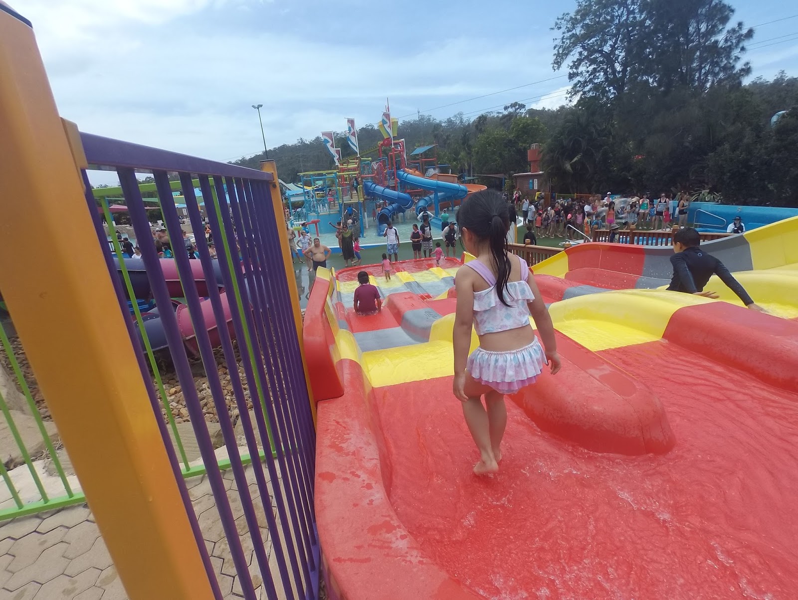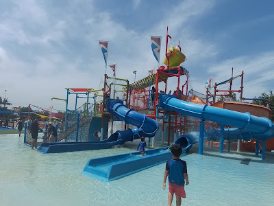 女兒一直渴望游水,早幾天在酒店泳池已玩得不亦樂乎,來到這裏,一入場看到巨浪泳池已玩到不肯走,玩了幾轉巨浪來襲,好不容易才說服到她離開到其他區域玩耍。 先玩漂浮河,坐在大水泡上漂浮了一個圈,然後就前往兒童區。一到兒童區,她立即瘋狂了,玩完滑梯玩水槍,玩完水槍玩攀爬,玩完攀爬又再玩滑梯,天啊,這裏有很多款滑梯啊,有些她想也不想就滑下來,有些則要多番鼓勵才敢滑下,她開心到每次滑下後也跳起舞來,旁邊負責維持秩序的工作人員也被她逗樂了。