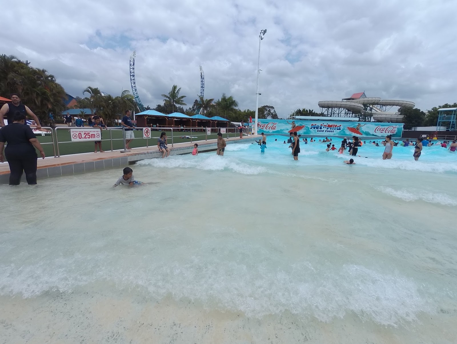 最後的最後,她堅持要再玩一次巨浪泳池才肯罷休。這天陽光雖然不算猛烈,但我們玩了一整天,還是給曬黑了,甚至是曬傷了。不過,這天該是黃金海岸玩得最歡暢的一天,整天女兒笑個不停,真的很好玩。