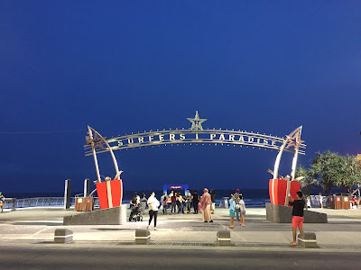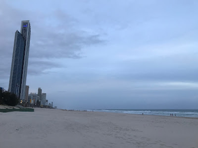 離開Q1後就去逛沙灘。噢,來到黃金海岸多天,竟然沒正式在沙灘玩過,實在說不過去。事實上,雖然衝浪者天堂十分著名,但這只是對衝浪者而言,因為太大浪,根本不適合一般游水,於是我們只是在沙灘漫步,女兒走著走著就蹲下來玩沙,我們就隨她喜歡玩多久。這裏的沙超細滑的,真的不是浪得虛名。