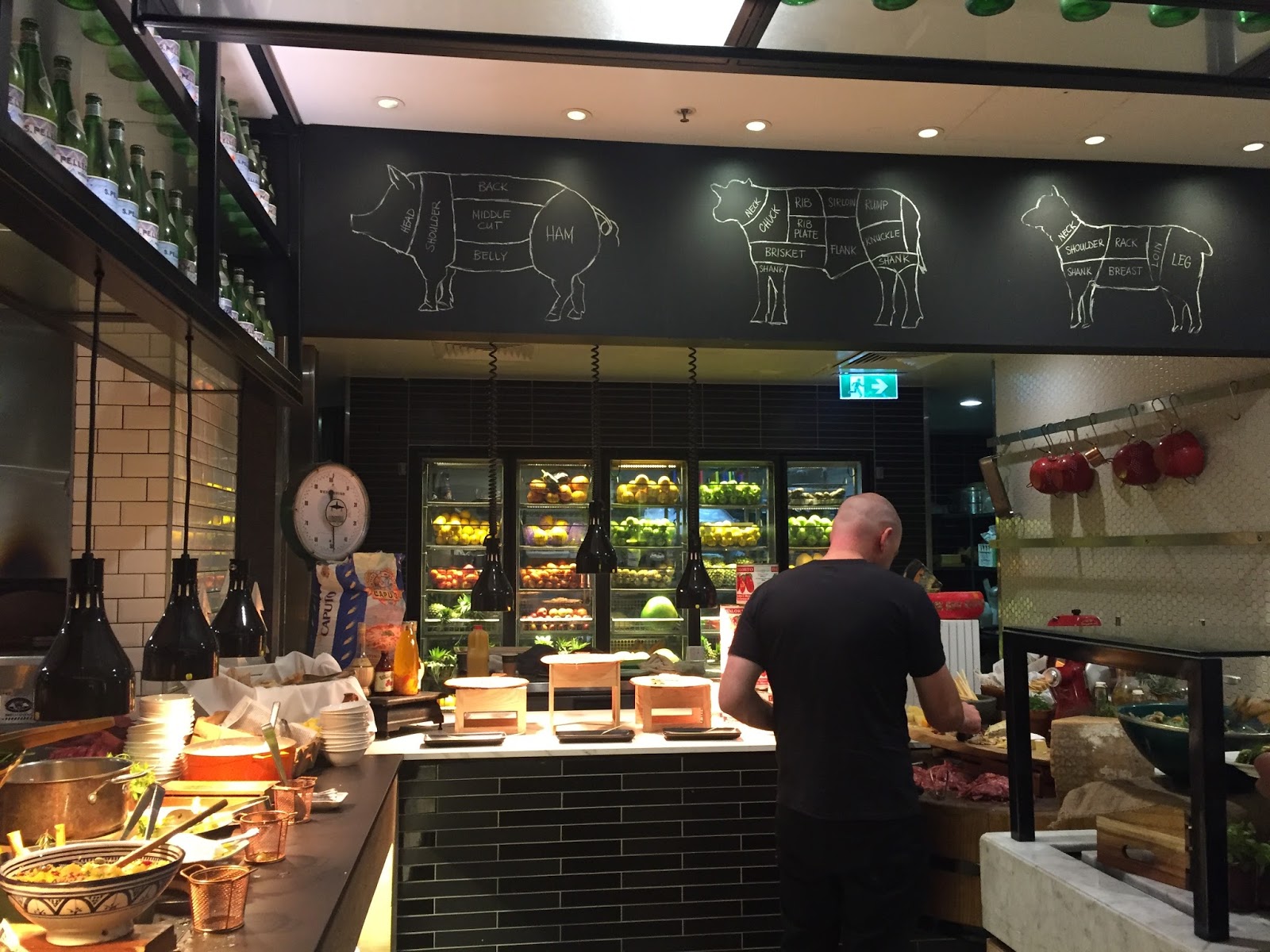 這天是平安夜,我們一早預約了QT酒店的自助晚餐(據說是黃金海岸最著名的自助餐之一),玩完彈床就回去酒店吃自助餐。