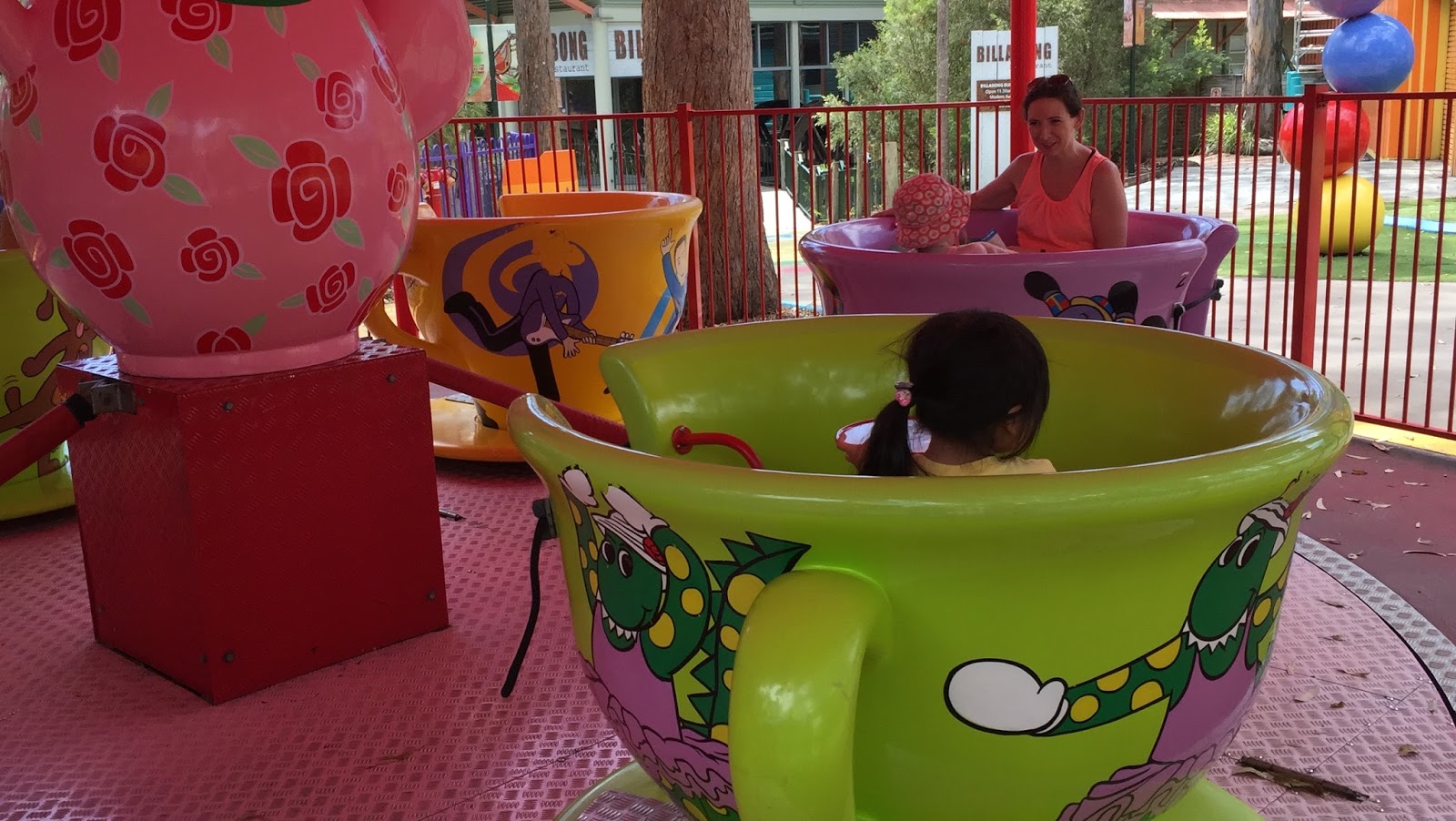 機動遊戲方面,兒童區的遊戲連五歲的女兒也嫌太幼稚,而一旦離開兒童區,就只有兩三款遊戲適合女兒玩,加上女兒不想到動物區看動物,所以我們便放棄機動遊戲,直接玩攤位遊戲,可能因為沒有甚麼人在玩,對方竟然一直讓女兒玩到贏為止。我們玩了個多小時已基本上玩完Dreamworld,那就改戰White Water Park好了。 水上樂園啊,就算只有一個泳池也夠她玩,更何況這裏肯定不止泳池。兒童區的滑梯連大人也可以玩(之前在Wet n Wild的兒童區,滑梯只供小童玩),於是女兒拉著我滑完一次又一次。這裏另一刺激之處是大筒水定時倒下來,被水淋到肯定V嘩鬼叫,開始時我們都在避開被大筒水淋到,但後來爸爸猛鼓勵三人一起試被大筒水照頭淋,玩了一次之後她竟然笑著多謝爸爸,然後就瘋狂地玩完滑梯玩淋水,玩完淋水玩滑梯。小朋友都樂於重複他們認為好玩的玩意,玩多久也不厭倦。