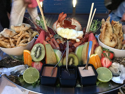 抵達車站後,旅遊巴已在等候,駛經夜市時我們直接下車,再次租用潛水相機再步行至碼頭,這次終於可以光顧鱷魚餐廳了,餐廳依然爆滿,只能坐在外面,雖然這天有一點小雨,但不至於影響我們用餐。我點了海鮮併盤,吃到我來澳洲以來最好味的生蠔,因為我很喜歡吃生蠔,所以有一種終於吃到了的滿足感。