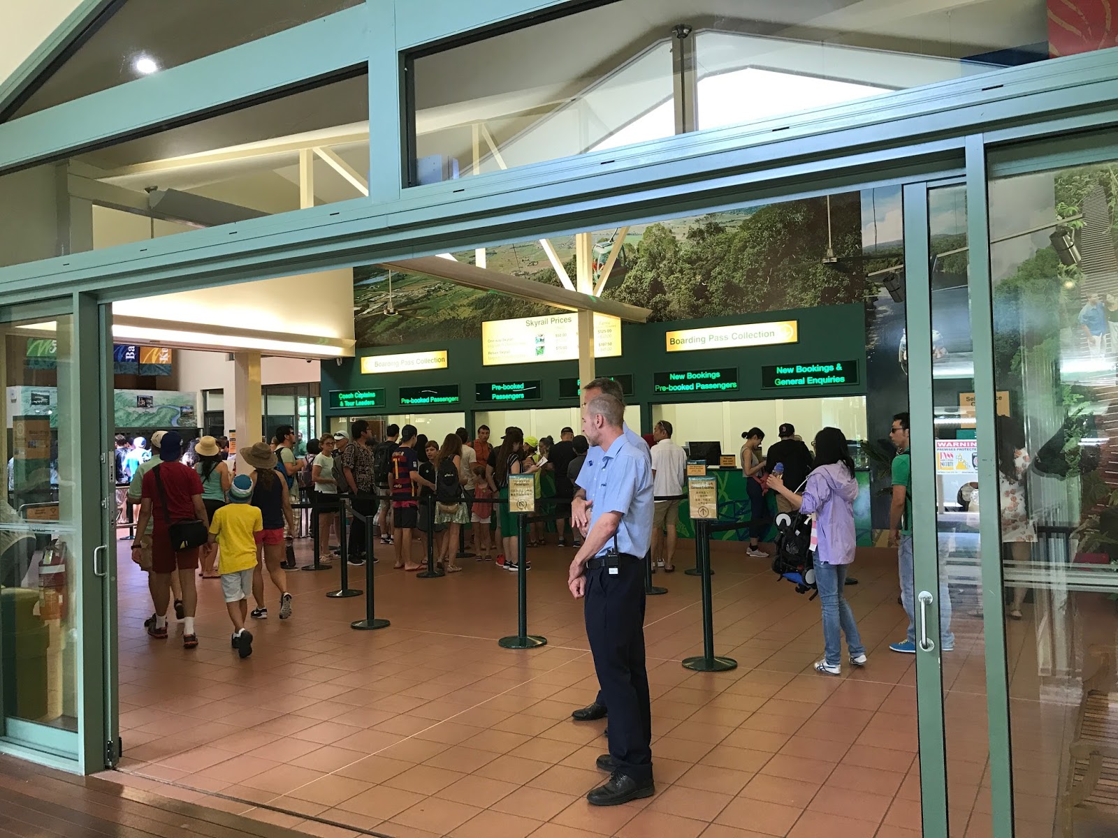 這天的行程庫蘭達熱帶雨林公園+蒸氣火車+天軌纜車全覽一日遊,其實類似的行程有很多,當中有著細微的差別,看行程簡介似乎這一團的行程包攬最多內容,而價錢是最便宜的,故就選了這一團。 其實這算是半自助形式,旅遊巴到酒店接載團員,導遊講解了一下各項安排,到達纜車站後就發給我們纜車票讓我們自行活動,中途會在庫蘭達小鎮再載我們去熱帶雨林公園,然後我們自行乘搭蒸氣火車到車站,最後旅遊巴會載我們回酒店。由於每個站點之間有時間限制,所以一定要把握時間,否則趕不上車就後果自負了。