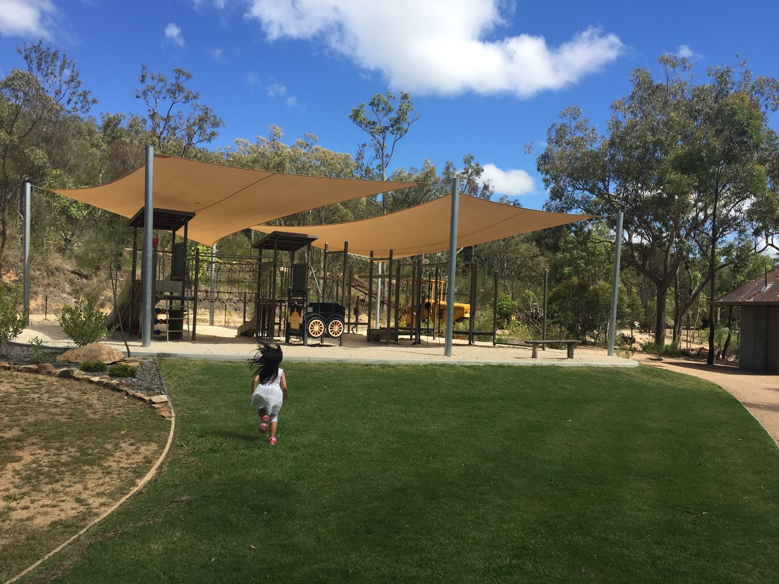 時間合適的話,還可以坐上20分鐘車程的火車呢。我們沒坐火車,因為女兒發現過橋後有個小公園,於是玩了一輪公園設施。