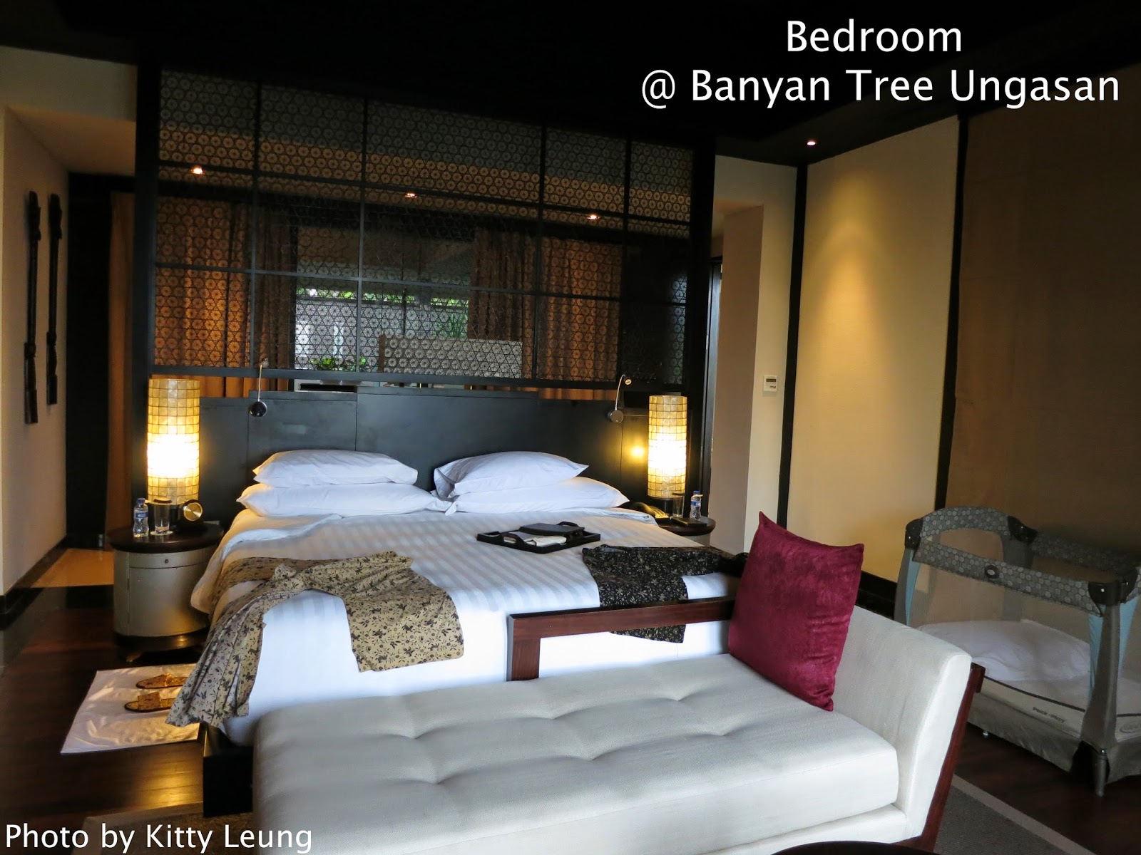 【寫在前頭】 來來來,下星期又要去旅行了,而四個月前的峇里遊還未寫。 這是我們真正一家三口的第一次旅行,無論如何也得記下來吧。 2013年的3月和6月分別跟我家和愛人的長輩去過台北和新加坡,所以這次雖然只有我們跟女兒單打獨鬥,但已不再感到徬徨。 選擇峇里的原因,在前文提過(按此),那是我渴望前往的地方,但問我旅遊期間有沒有十分興奮,旅遊回來有沒有甚麼難忘之處,我的答案卻是否定的。 我猜,原因有三。 一來我們住的酒店位置偏遠,我們只有一天半的時間外出,根本無法深入了解這個地方(也實在有太多地方沒去到吧) 二來我們帶來女兒,只能走馬看花,無法上天下海玩個痛快。 三來我喜歡陽光與海灘,但這幾天不時下雨,陽光只偶然露面,至於海灘,酒店的海灘不適合游水,而另一區的海灘也只能看一眼,根本沒享受到。 雖然如此,這次的旅行其實還是十分愉快的,只是沒有驚喜罷了。 【Banyan Tree Ungasan】 我們全程入住Banyan Tree Ungasan,酒店真是美得沒話說的。 Banyan Tree Ungasan全線都是Villa,確實是我住過最大最豪華的一次(當然也是最貴的吧)。 之前在蘇梅島住過W Retreat的Villa,也很大很豪華,但是那裏的私人泳池太小,池水也冷,我根本無法下水。 但在Banyan Tree Ungasan,那個私人泳池大得可以暢泳,而且重點是,池水是暖的,於是我們一家三口在那裏享有許多愉快時光。 上一次女兒在新加坡游水時,兩次下水時都有點害怕,要哄一會才玩得開心。 事隔半年,女兒沒再游過水,沒想到她還記得游水的裝備,她知道可以游水後一直表現雀躍,心急嚷著要用水泡,下水完全無障礙,一開始便全程投入,曬到紅了仍不願上水,玩完一次又一次。 往後幾天也有讓她游水,她也表現得很開心,似乎她真的很喜歡游水。 除了私人泳池外,還有戶外按摩池,同樣舒適。 Banyan Tree作為著名品牌,服務水準當然一流,而且非常貼心。我們帶著女兒,他們不但提供嬰兒床和嬰兒專用的沐浴用品,更連尿片、烚奶瓶器和暖奶器也一應俱全。 酒店安排了機場接送服務,但因為我下機後到洗手間走了一轉,出來時過關等了近兩小時才輪到我們,折騰了在外面等待我們的司機,但當然對方沒有一句怨言,只是對我們遲遲未出現表示憂慮。 因為我們遲了,所以到傍晚才來到酒店,當天基本上就沒有任何行程可言。 我們辦理入住登記手續時,職員在我們的額上貼上一些米粒,又給我和女兒帶上雞蛋花,女兒既好奇又覺得有趣。 辦好登記手續後就乘坐buggy到酒店房,先走過庭園才進入主屋部份,客廳和飯廳超大,睡房寬敞雅緻,早上聽著屋頂的雀鳥叫聲醒來。我對酒店房最注重的地方是浴室,而這裏的浴室絕對超越我的期望,除了浴缸、花灑外,更有室外花灑,而且雙臉盆,地方寬敞,沒有可以挑剔之處。 話說入住當天的浴缸佈置成這樣,如果是二人世界的話實在浪漫得無話可說,但帶著女兒同行,也就只能拍照留念。 每天酒店員工來開床後也會換上新水果,又會點上香薰,讓我們回來時一室清香。 酒店不時送上小禮物,兩晚送上小袋子,一晚送上Banyan Tree 禮品廊的禮品換領券,非常窩心。 於是,我們在禮品廊換了一雙筷子,女兒還買了一隻小兔子和小熊,她在四個月後依然記得那隻小兔子在峇里購買呢,所以她對峇里之行該有很好的印象吧。 酒店設有兒童遊樂室,我們吃完早餐便帶女兒到那裏玩玩,因為沒有其他小孩,她可以獨自享用所有玩具,玩夠了再回房間游水。 三人行總是以女兒為先,完全扭轉我們之前旅行的概念吧。 這裏雖然設有私人沙灘,但完全不適合游泳,甚至乎連散步也不適合。我們坐酒店Buggy到沙灘附近下車後還要走一大段崎嶇的梯級,抱著一個兩歲的小孩實在有點吃力,去到沙灘已近黃昏,女兒又不肯碰沙,於是拍拍照片便離開。噢,抱著女兒爬上梯級似乎更加吃力。嗯,這也算是一種體驗吧。