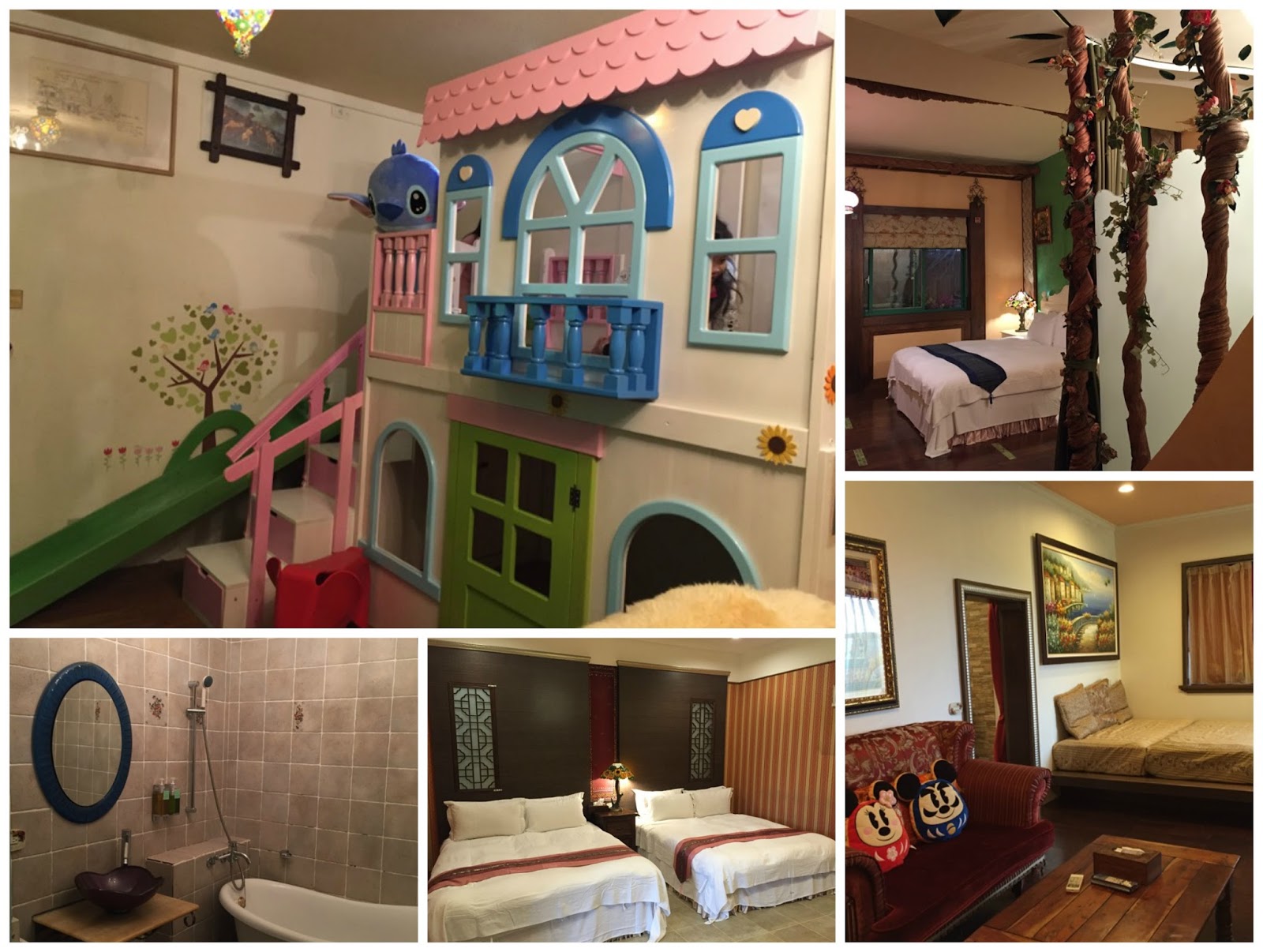 【計劃】 近三年的復活節都在台灣度過。 女兒四歲半,已連續四年去台灣。這次復活節安排台灣行程時,最初計劃去高雄,但因為航班問題已打消這念頭,再計劃行程時因為想住親子民宿,所以就將地點鎖定宜蘭。 我喜歡聖荷緹的環境,摩登時尚,房內就有滑梯有鞦韆,室外也有小水池,我猜想應該會玩得高興。 芯園的感覺童話一點,有滑梯但沒有鞦韆,但是芯園有免費任穿的公主裝,我心想女兒應該會喜歡扮公主,所以這也是一個選擇因素。 最初計劃時只有我們一家三口,我先向芯園查詢,由於我想入住的三人房已被訂(民宿的每一間房也有不同設計),所以我就改訂聖荷緹,經PAYPAL付款,很方便。但後來女兒表姐一家三口也可以加入,我猜想兩表姐妹一起扮公主一定會玩得更高興,於是就改訂芯園的六人房,幸好聖荷緹那邊可以退款,只是蝕了一點手續費。 我們最後選定艾莉絲子城堡,兩層樓,很適合兩家人入住。 【桃禧航空城大飯店】 因為只有四天假期,為了節省時間,我們在前一天乘晚上8:20的航班先到台灣住一晚,這樣翌日早上就可以直接玩了。 考慮到抵達機場已很夜,所以就入住桃園附近的酒店,最後選定了桃禧航空城大飯店,最初在酒店訂房網訂了酒店,但後來發現官網有更便宜的親子歡樂一泊二食專案,包三人早、晚餐、木樂地入場券,而且還可以入住親子樓層,在房內設置帳篷,哈,真的未去宜蘭住民宿在這裏也玩得開心了。 木樂地是甚麼?根據官網介紹,木樂地就是使用木頭建構的遊樂園地,能讓父母安心、讓小朋友開心遊戲。「木樂地」的核心包含了【親子關係】、【學習】、【環保】、【快樂】、【安全】、【形象】,六大訴求。 當晚我們差不多11時才離開機場,女兒看到帳篷興奮得玩了一輪,雖然最後還是不願意自己睡帳篷,但已是一次難忘經驗。 翌日先享受自助早餐,然後就到木樂地玩了。我們六人包場,兩表姐妹可以安心隨便玩。木樂地地方不算很大,但多個展區也有心思,極具規模的廚房和超市令女兒玩到心花怒放(平時她就愛玩廚房仔),還有扮靚區、釣魚區、滑梯沙池、模型區、幼兒區等等,兩個小女孩玩足兩個小時,最後依依不捨地離開。 玩完又吃飯了。因為我們抵台時間太晚,酒店主動將贈送的晚餐改為午餐,於是我們又享用了一頓自助午餐,1:30乘包車離開,往宜蘭出發。 【芯園】 由桃園到宜蘭的民宿,車程約1小時40分,我們在3:10抵達,立即登記入住,負責人簡單介紹一下房內設施,其實女孩已忍不住開始玩了。難怪,看到這間佈滿公仔的滑梯小屋,小孩怎麼忍得住? 兩個女孩進入民宿後就不願離開,於是這天接下來的時間都在民宿度過,不過正好這天下雨,所以就讓兩個女孩在房間玩個夠。 我們入住的艾莉絲親子城堡共兩層,我們一家三口選了樓上那一層,滑梯小屋在樓下的大廳,玩了一會,我帶女兒挑選公主裙(這是選這間民宿的重點啊),她一開始選定了Elsa(又是Elsa!)裙,從此情有獨鍾,但我想她多穿幾款,於是她在半推半就之下再穿了兩款,即共三款,然後我也不再勉強她了。 玩夠了滑梯小屋,就到樓上玩,這裏有個小偏廳,偏廳有一張大大大床,女孩在床上跳來跳去也樂此不疲。玩了一個下午,我們連晚餐也在民宿享用,真正做到足不出戶,哈。吃完晚餐回客房繼續玩,單是玩尋寶遊戲也玩了一個小時,在陌生的環境玩尋寶遊戲特別好玩。 如果問我對芯園的評價,那就是環境很漂亮,但是親子感覺比我預期遜色,客房佈置有歐式味道,但除了那間滑梯小屋外,其實沒有太多小童玩樂元素,至於免費任穿的公主服,由於女兒表現得興趣缺缺而跟我的期望有所落差。但其實女兒一直玩得很高興就是。 【宜蘭遊】 到宜蘭第二天正式遊宜蘭。這天包了車,司機除了按我們的行程行走,也作出一些建議。反正我沒有備課,事前完全不知道這裏有甚麼,所以去到哪裏也是新奇。 第一站是蠟藝彩繪館,畫了一輪,再教你製作水筆和蠟筆,又在女兒手上印圖案,最後還可挑選小禮物,女兒玩得開心,這個點似乎成為她宜蘭遊印象最深的一站。 第二站是白米木屐館,先聽講解歷史背景,再參觀各款木屐,我明明對木屐沒多大興趣,但最後竟然一家三口各買了一對木屐回家,意想不到啊。買完木屐再自製木屐匙扣,簡單易做。 玩完這兩個站之後,女兒不斷喊肚餓,於是司機載我們到一間小店吃古早麵,便宜又好味。 這天因為傷風,飯後見餐廳對面就是藥房,就想買一點成藥,結果老闆細心詢問我的病徵後才給我配藥,而我吃了幾次那些藥就痊癒了,很正。 第三站是梅花湖,我們抵達梅花湖時,女兒已在車上睡得很熟,結果我們抱她到鴨仔電動車,遊了半個湖她才醒來。我們在湖邊泊車在草地上走走拍拍照,也玩得很開心。我們圍繞梅花湖遊了兩個圈才還車,然後買些小吃解解饞。 第四站是去買宜蘭餅給母親做手信。其實平時我去旅行不會買手信,行李箱的空間很有限,實在沒有多餘位置買一大堆食物回去。不過我未出發母親已有此委托,所以就不負所托,買了再說。 第五站是司機介紹的羅東林業文化村,看看舊火車和火車站,也是一種特色。 最後一站是羅東夜市,帶著小孩不敢隨便吃街頭小食,只讓女兒玩了一個攤位遊戲,這比澳門玩過的攤位遊戲划算多了,價錢合理,遊戲用的波多到玩極也有,而且最後還贏得一盒玩具,讓女兒樂透了。這絕對是良心生意,不是只為了賺錢,也讓玩家玩得開心和滿足。玩