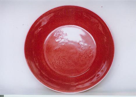 大明宣德年製款紅釉花朵盤(一)