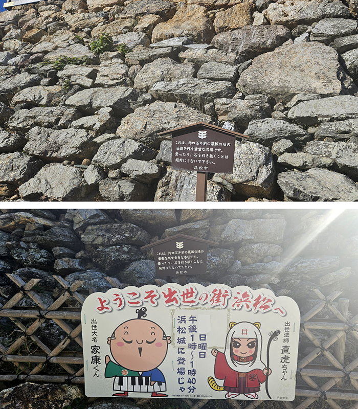 濱松城,位於靜岡縣濱松市區,原為16世紀永正年間由今川家所興建的「曳馬城」,德川家康於1568年攻取之後,其後則在曳馬城西南建造新的城池,根據該地的濱松莊改名為濱松城,並於1570年以濱松城作為居城,約於1582年增築工作完結,德川家康在此生活了17年,直到1586年將居城遷移到駿府城;在濱松城這段時期奠定了日後取得天下的基礎,因此濱松城被稱為「出世城」(即成功、發跡之城)。德川幕府建立後,曾被分封到濱松城的歷代多位城主,都擢升為幕府重臣,遂讓濱松城的「出世城」之名更加響亮。濱松城於1871年廢城,明治維新期間被拆除,原有城址於1950年改建為濱松城公園,天守閣則在1958年於原址重建。濱松城作為德川家康邁向天下統一的重要據點,於1959年列入為濱松市市跡,是當地居民休憩的好去處,亦為濱松市代表性的人氣景點。