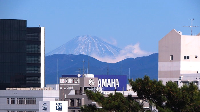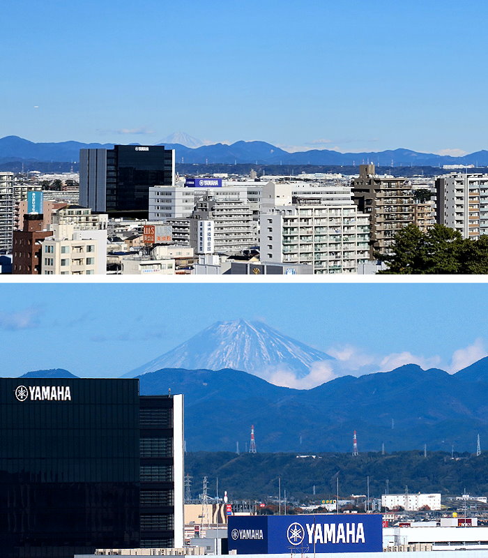 自「富士見櫓跡」遠眺富士山。 拉個長鏡頭將富士山峰看清楚。