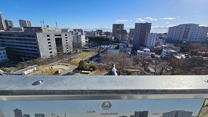 南面向濱松市區,左側灰色大型建築為浜松市役所,最遠方隱約可見太平洋。