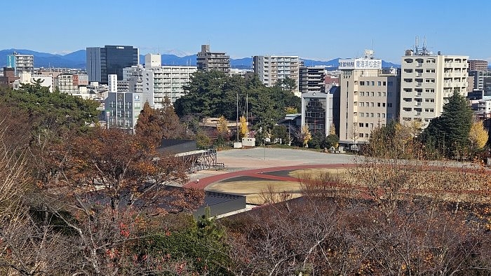 俯瞰「富士見櫓跡」,天氣晴朗之日可見到富士山峰。