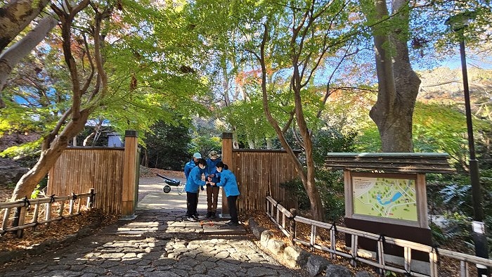 濱松城公園為紀念昭和天皇即位50周年,於1977年增建了一座日本庭園,正門採武家屋敷風的木造門形式。
