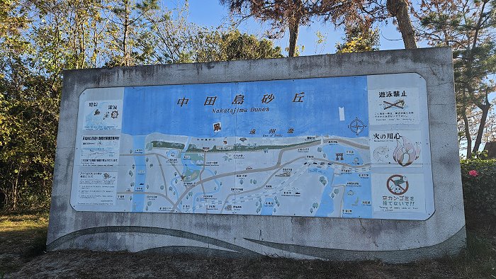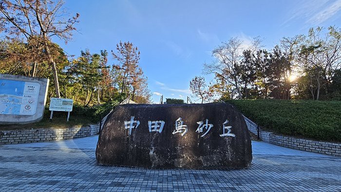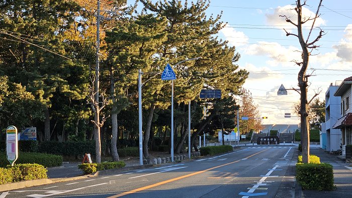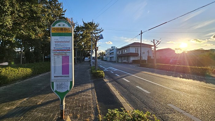 約15分鐘車程,於「中田島砂丘」バスのりば(↑圖左側)下車,沿著「中田島街道」的人行道直走即可看到中田島砂丘入口。