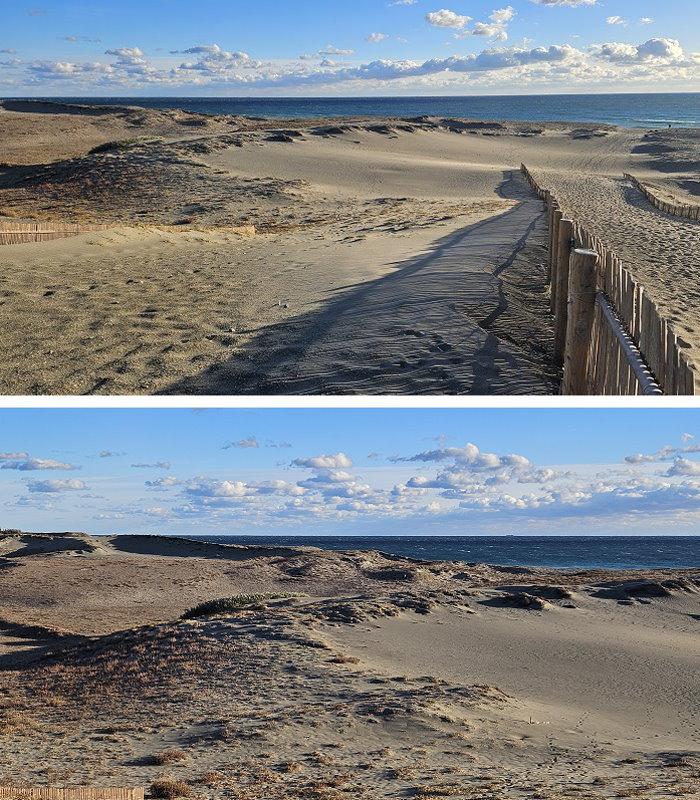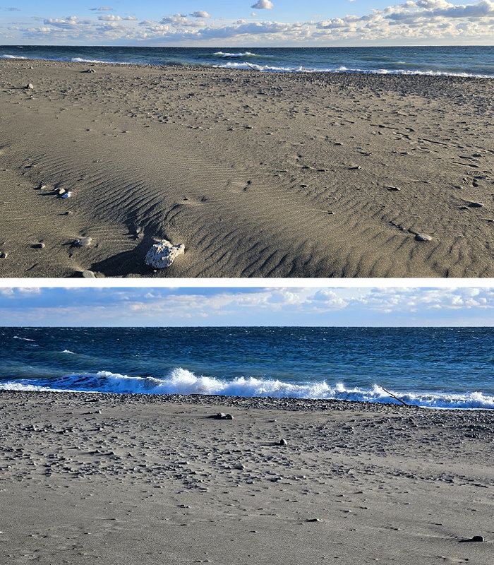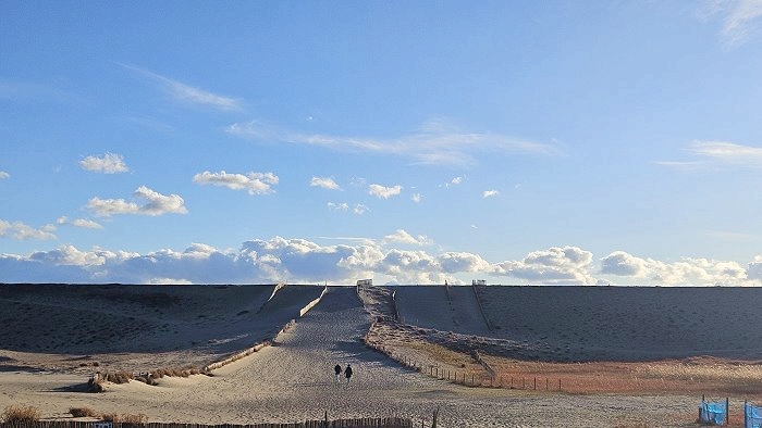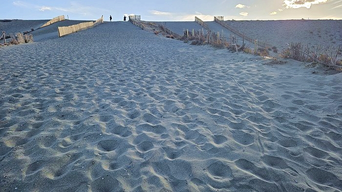 砂丘最高點再向海岸下行,沙灘延伸約300公尺直至海岸,連接一望無際的太平洋。