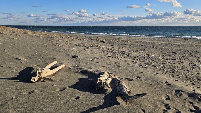 沙灘上的漂流木,彷彿亙古的獸骸。