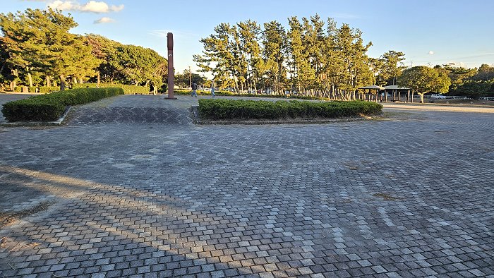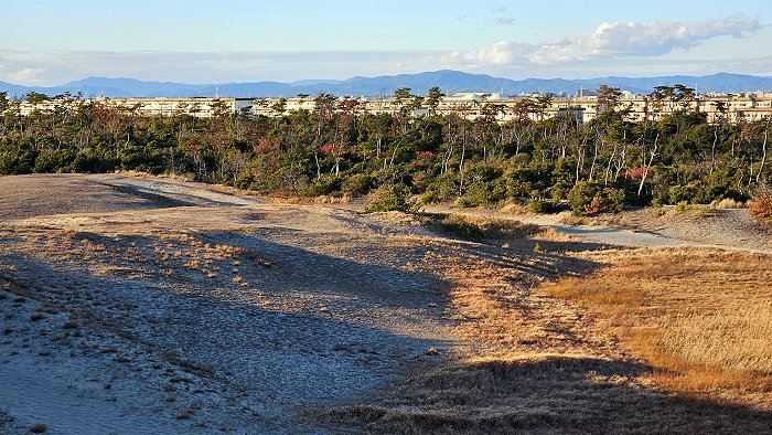 東面向有個完整的沙坑。遠方的建築是「浜松市南部清掃工場」,柱狀建構應該是焚化爐煙囪。
