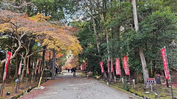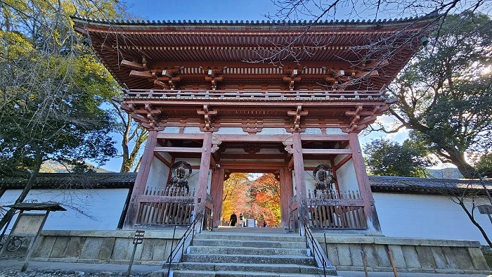 穿過仁王門的參道,宛若行走於紅葉長廊。