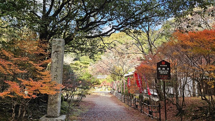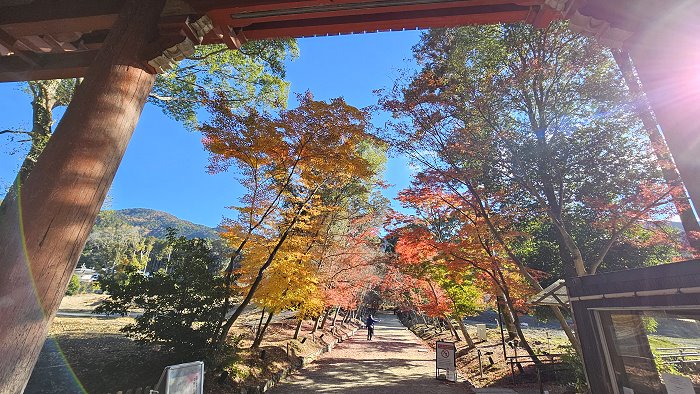 自西大門(仁王門)眺望「下醍醐」境內,參道旁紅葉林立。