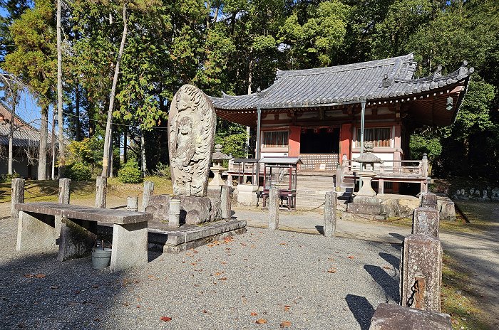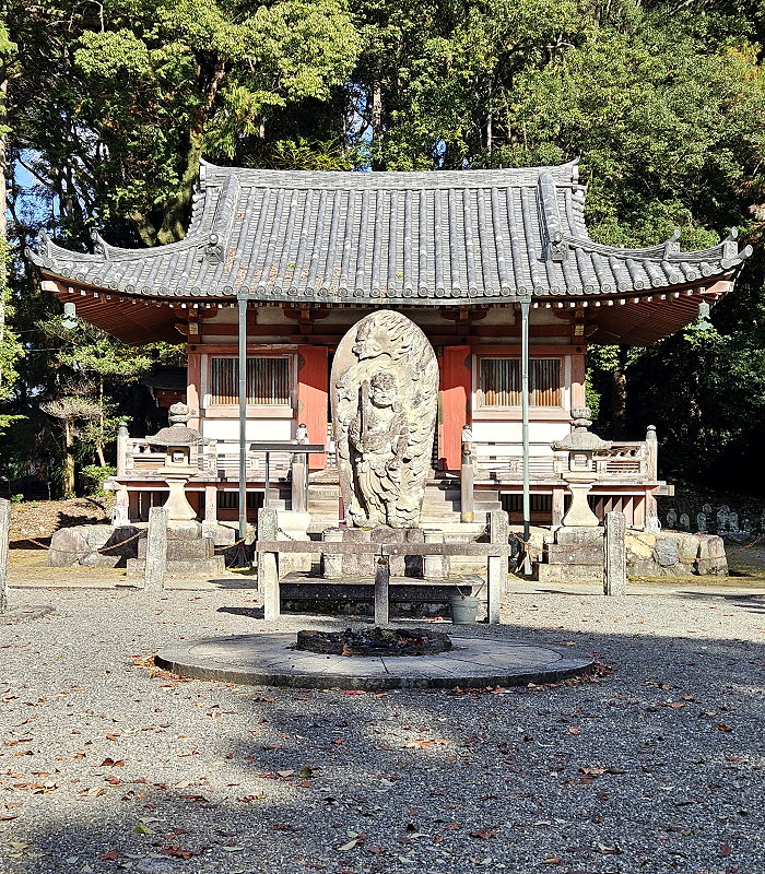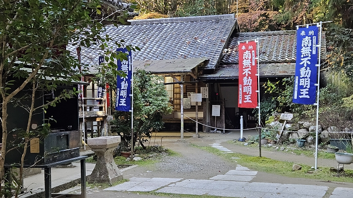 不動堂,前方為「不動明王」石雕,堂內供奉五大明王。不動明王本是起源於印度的古老神明,在日本佛教中山岳信仰的神祇中占有一席之地。