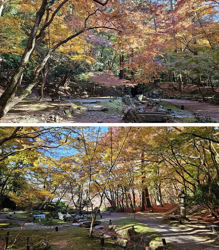 弁天池旁周遭為林泉苑,是下醍醐最多伊呂波楓的景點,秋末時節楓葉可見綠、黃、橙、紅色彩繽紛。