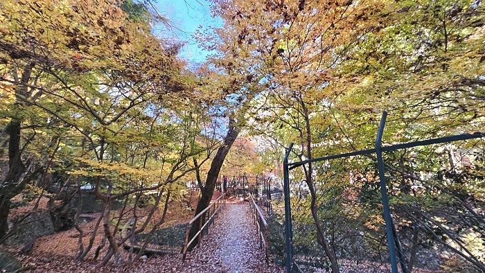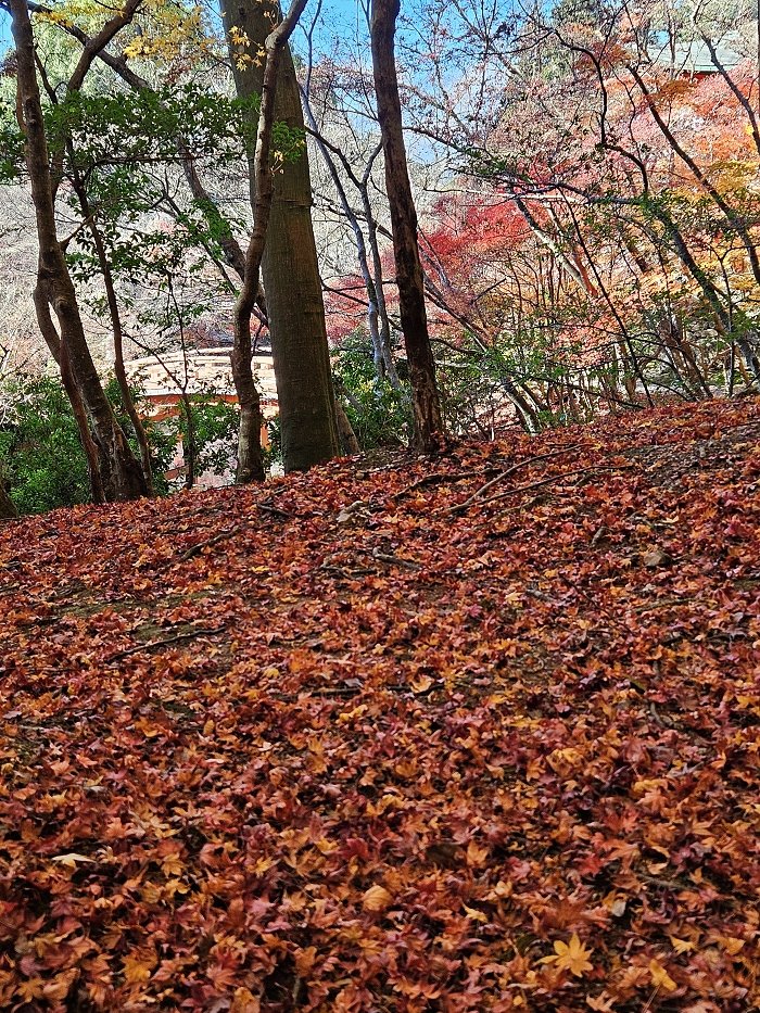 弁天堂後林間小徑紅葉漫天。