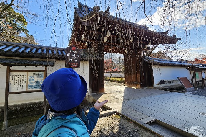 三寶院前的參道通往下醍醐境內,門前有著名的「櫻花隧道」,12月初所見櫻花樹就是枝繁葉落盡的景況。