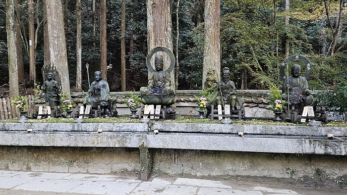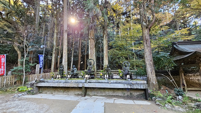 本堂前(左自右)依次供奉著不動明王、理源大師、彌勒菩薩、役行者和地藏菩薩。
