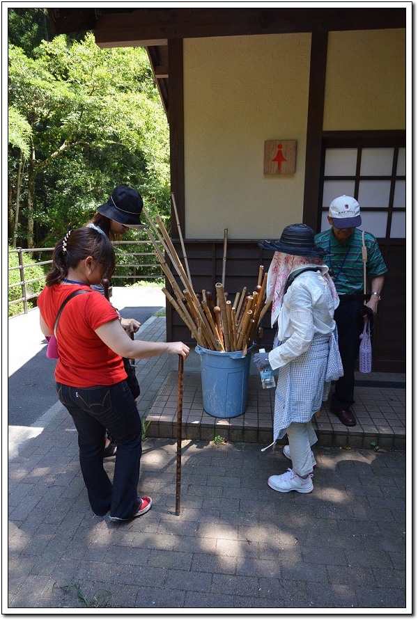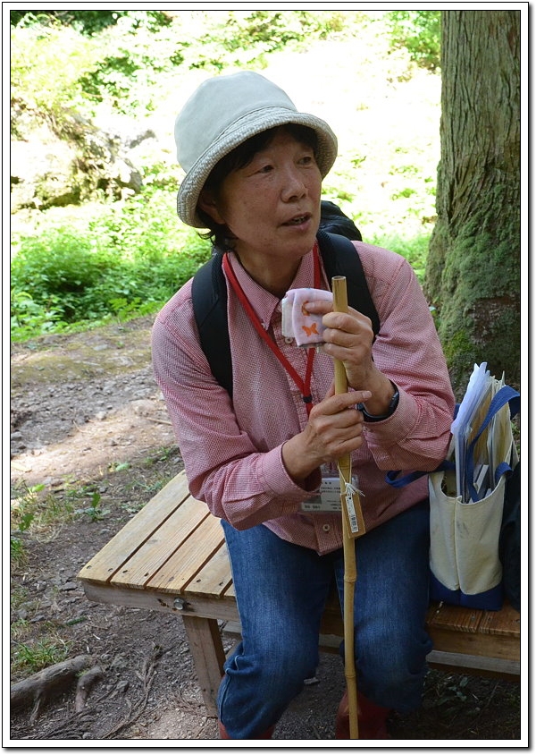 因為在網路預約時已經表明不會日文,所以中心特別請了這位會說英文的大姊來帶領我們,但因巴士烏龍事件的延誤,讓她先帶我們原預定的團出發;當她帶團下山遇見我們正要上山,打了招呼得知我們就是唯二來自臺灣不會日文的旅客,在將她的團員帶回到世界遺產中心後,又自己開車回來,快速上山追上我們這團,全程相伴替我們英文解說,如此熱誠相待足甘心耶,大感激!