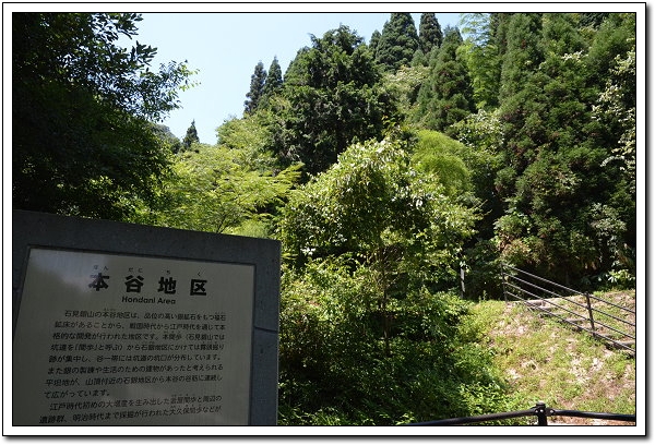 這裡屬石見銀山的本谷地區。江戶時代,本谷地區是許多礦工的居所,但隨著礦山的關閉,如今本谷地區就只是一片無人居住的林野山谷而已。