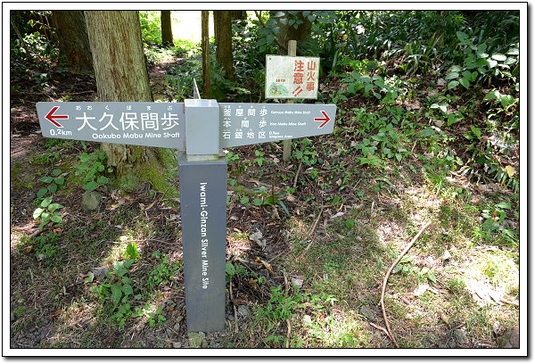 從瞭望台眺望,可以看到石見銀山世界遺產中心右方有座很像馬雅金字塔造型觀景台──天氣實在爆熱,因此也就興致缺缺上去。 石見銀山雖然指定為日本重要文化財以及世界遺產,但底下的坑道錯綜複雜,到現在都還無法釐清,連地表上的開採遺跡等等都還在進行研究與各種考古調查。 |