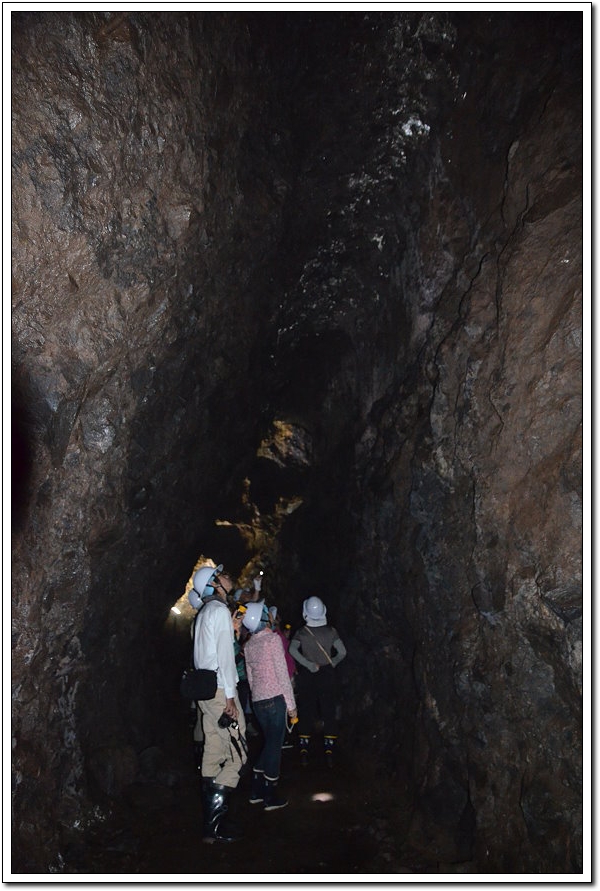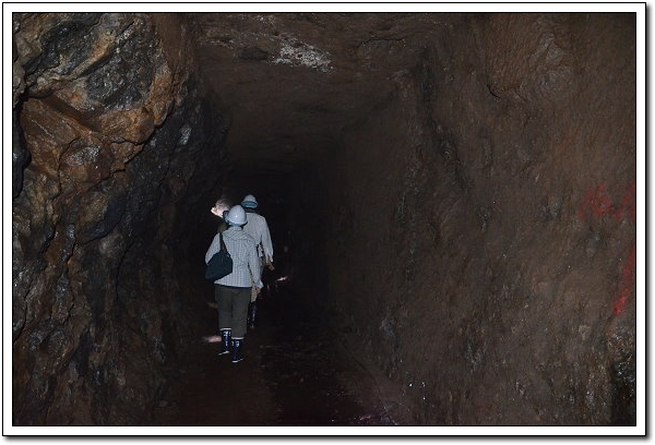 坑道內高達5公尺,傳說大久保長安曾經騎馬持槍進入過間步。由此圖約可看出礦坑通道的高度。