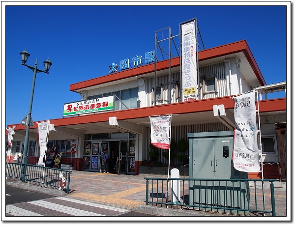 約30分鐘後,車子到了大森這裡全部的人都下車,司機也叫我們下車,下車後根本看不到石見銀山世界遺產中心的建築,走啊走,才看到有店家,前去一問,才知道這裡根本不是石見銀山世界遺產中心站前,原來巴士司機擺烏龍弄錯了我們的目的地。再回巴士站車子早走了,當時連電動三輪計程車也沒有得叫,又不適合租腳踏車去,只好再等下一班巴士!這一等,就耗掉45分鐘……
