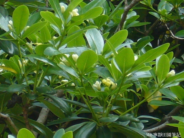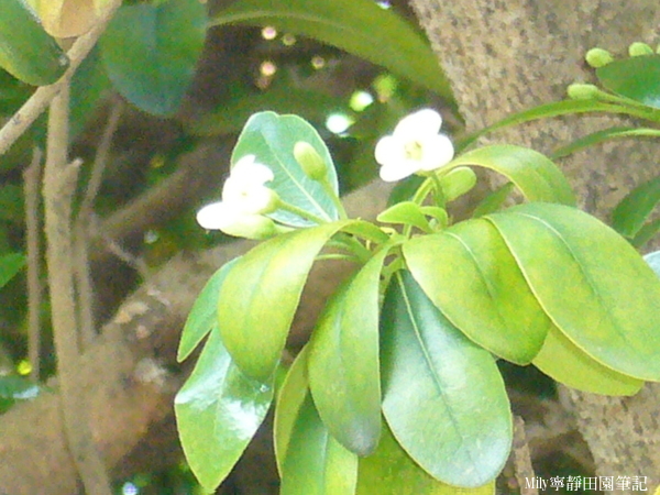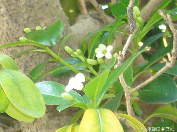 別名:七里香,和月橘一樣有著相同的別稱,開著白著的花,結出裡面紅色的果實。