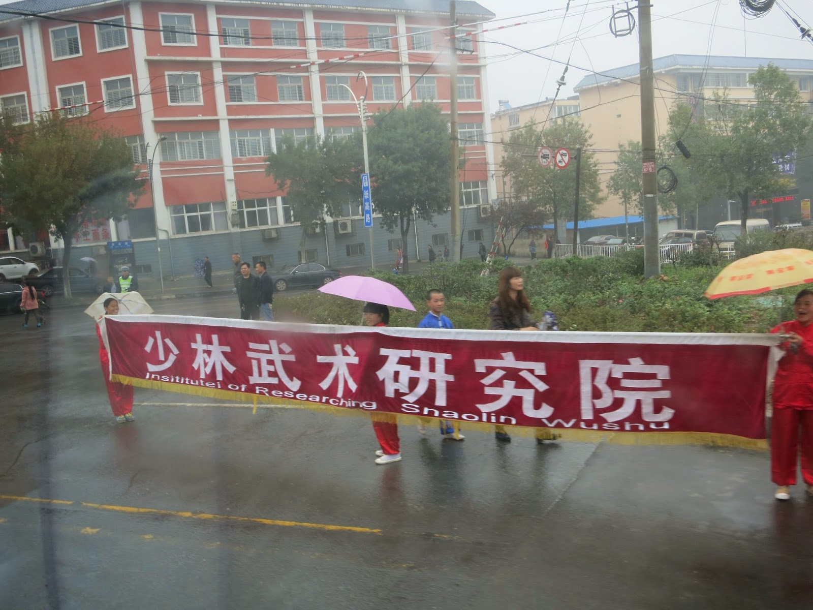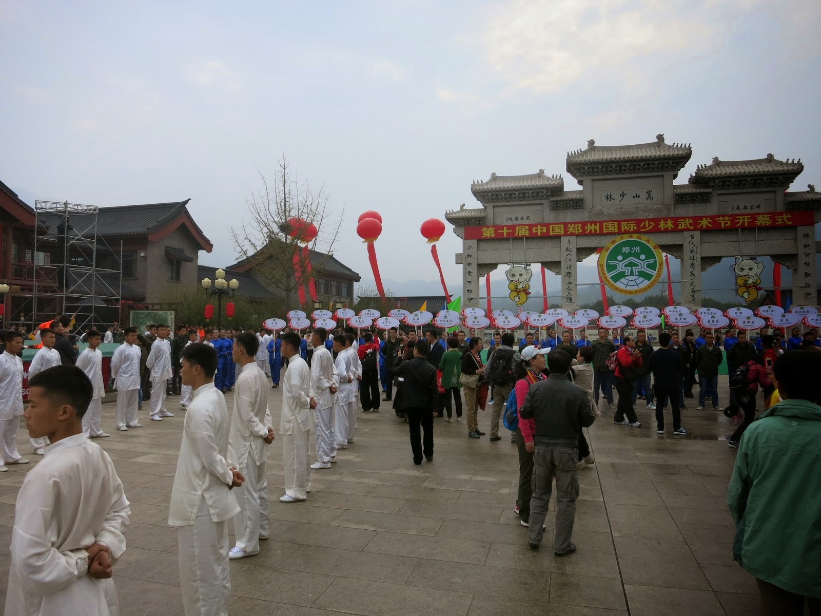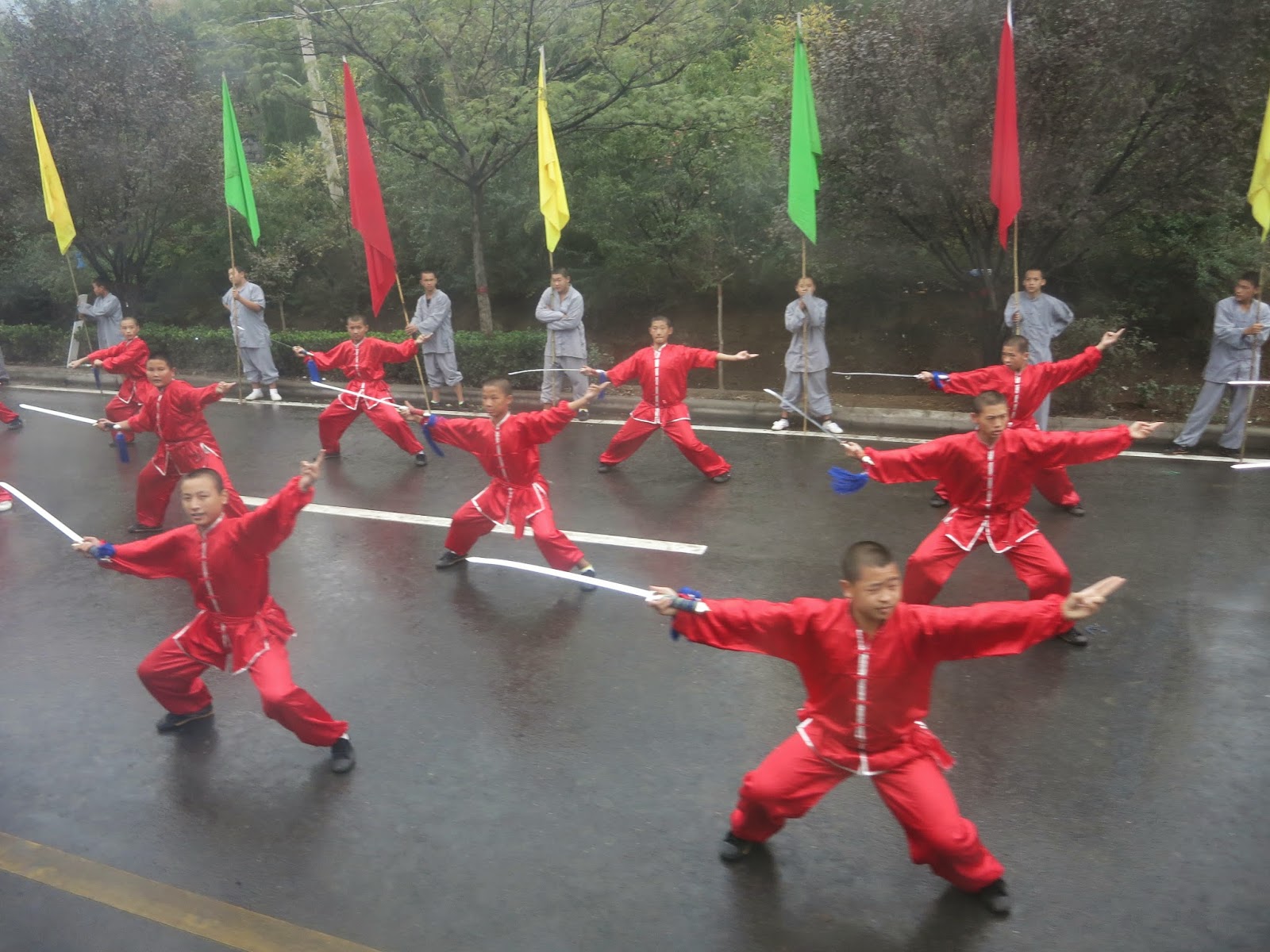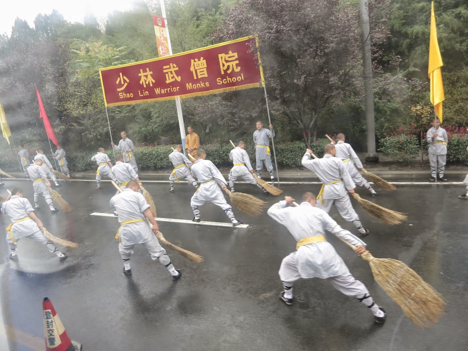 2014第十屆中國鄭州國際少林武術節遊記(三) ------ 少林‧登封一早起床,我們每個人都非常的興奮,因為我們下午就要出發前往少林寺參加這次國際少林武術節的開幕儀式,可是無法與台灣聯繫的我還是一件無法解決的麻煩事 情。慶幸陳老師有攜帶筆記型電腦出門,昨晚是有用他的電腦上網回覆家人報平安,可是總不能每天都給別人添麻煩吧?因此,趁著還有一點時間,我與林老師一起 「打的」出發前往鄭州市區找通信業者申請一張臨時的電話卡。在大陸,「距離」的定位真的與台灣差異甚大,一樣是市中心我們從住的地方前往比較大型的電信業者的門市還得開車將近20分鐘才能抵達。而且大陸的空氣糟糕實在得講三遍,因為真的太糟糕了!天空永遠有一層灰矇矇的霾,台灣出來嬌生慣養的我們馬上感覺到整個鼻腔的不舒服... 大陸的「打的」就是計程車的意思,而他們的計程車也是跳表計費,還可以使用app來叫車喔!整體都跟台灣差不多,唯獨不同的是中間隔著一個鐵欄杆... 害我們在搭車的時候感覺自己好像因為犯罪而上了囚車的犯人。河南腔有著大家熟悉的北方腔調的感覺,對他們而言我們來自台灣的獨特國語口音也覺得好奇,因此 這幾天每次坐計程車司機都會或多或少問我們打哪來?然後聽到我們來自於台灣更會興奮的問我們:台灣計程車司機賺得多嗎?台灣房價也很高嗎?台灣人生活如 何... 或許政治上大家有各自的堅持或是立場,但是平民百姓來說大家關注的還是一樣的事情啊。 來到市區,總算看到了大陸的「中華電信」,也就是她們的「中国移動」趕緊辦了一張卡。大陸這裡的電信不是月租費而是儲值扣款,因此打多少就用多少。只為了滿足基本行動上網與撥打臨時電話回台灣,我申辦最便宜的方案花了人民幣160元申請了一張卡。 看到後來手機可以接受訊息與撥打頓時真的高興到不行。 原本準備要回飯店準備了,怎知在旁邊看到更多讓我喜悅的東西。 「肯德基!」、「家樂福」還有還有... 「星巴克啊!!!」二話不說立刻衝進去點了杯咖啡...頓時覺得,自己總算活了過來。 (這就是人生啊) 一早來了一個小副本插曲並沒有影響整體的行動,回到了飯店看到其他國家的選手與老師也紛紛起床開始做準備。眾多團隊當中其中有一群帶領小朋友的「新武門」立刻吸引了眾人的目光。 他們的老師聽講中文的口音是來自大陸,但是教導孩子的時候都是全程英語,而學生通通都是金髮碧眼的孩子。他們大方的在飯店空間練拳打功夫,就連不屬於他們團隊的其他成員都紛紛過去看著他怎麼教孩子功夫。 這是一個非常珍貴的經驗學習,可以吸收其他團隊的老師怎麼指導學生,一邊看一邊也深深佩服。這位老師充分掌握住兒童年齡學習的節奏與強度,他的過程中讓孩子動作依然紮實但是大家還是充滿笑聲並且孩子勇於即時舉手請問事情,真是個好老師啊! 「各位準備出發啦!」隨隊的翻譯們已經獲得主辦單位的訊息之後開始紛紛整隊開始搭車準備出發前往這次大家最嚮往的目標「登封少林寺」。還記得我說過大陸的距離跟台灣有差嗎?今天早上我曾問過司機說少林寺遠不遠?司機輕鬆的說:很近,沒有很遠。 當我總算擁有上網的功能也上了車查了一下從我們這裡出發去少林寺的距離... 133 km ... 原來,在大陸開車兩個小時內的都叫做近啊。(後來司機還說洛陽很近...開封很近...要我們一定有空要去逛逛,我再也不信了) 這次的活動是高規格的禮遇,因此我們整個車隊一路下來有警車開道,路口也有警察協助交通引導並且綠燈到底,假如是台灣有這種安排可能都被當地住戶罵死了吧?真的不愧是集權政府啊。 下午的天氣開始轉濕冷,外面開始飄起了小雨,這一路車子直直的開,我們的心也一點一點的雀躍了起來。少林寺到底長著什麼樣子?真的有如小說那樣的神奇?還是有如台灣武術老師不屑的商業銅臭?看著一路上一成不變的風景,心裡也不斷的犯嘀咕。 鄭州前往少林寺必須要走「少洛高速公路」,我們下了交流道馬上看到的是相關的標語,車上其他國家的人也開始一點一點騷動了。因為我們總算快要接近目標了。 整個登封縣因為少林寺帶動武術市場,所以武術教學與觀光產業成為他們整個縣市主要的收入來源之一,這裡的馬路甚至直接用此為名,可想而知這背後有多大的產業鏈在運作著。看著他們整個入城市前的一個大型看板,誰說武術不能夠成為一個大產業呢? 我們開到了一間武校外大家開始興奮的拿著手機與相機拍攝著這碩大的武校,但是後來才發現這只不過是山腳下的一間「武校分部」,塔溝武校是少林寺旁邊眾多武 校當中數一數二的大學校,整個武術學校綿延整個少室山的路上。原本聽說有幾百間武術學校,但是這裡我看到的都是幾個超大型的武術學校集團,或許隨著這段時 間的經營與運作,資本主義也逐步的改變了這邊的武術生態吧?我們在這裡停頓了將近二十多分鐘,大家開始不解為什麼整個車隊要在這裡停下來呢?小朋友們也開 始不安了起來。 等待總是值得的,車子總算開始緩緩的始動了,我們探頭探腦的往窗外看,沒多久車上不安的交談轉換成驚呼與讚嘆,這是什麼啊!!! 整條往少林寺的路上一群又一群的迎賓隊伍整齊的排排站,他們冒著細雨耐著低溫在路上為了我們的車隊一遍又一遍的打著武術動作展現出他們的氣勢與精神,車上所有人看到這情景都傻