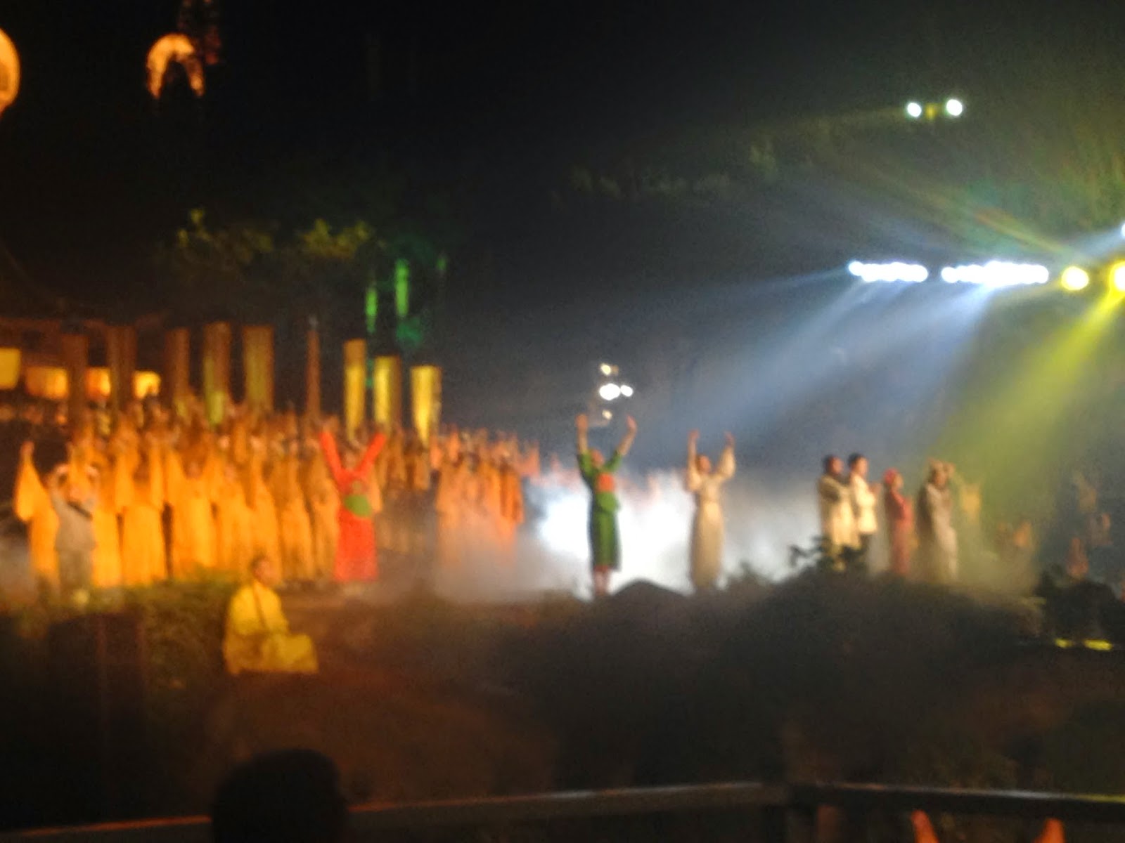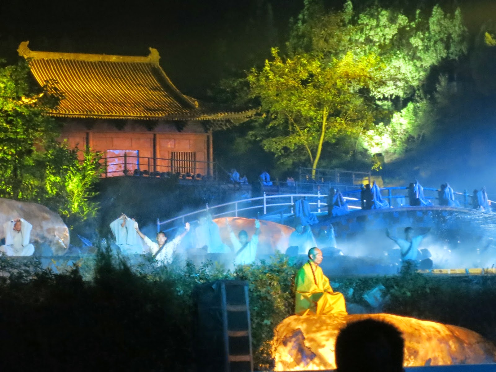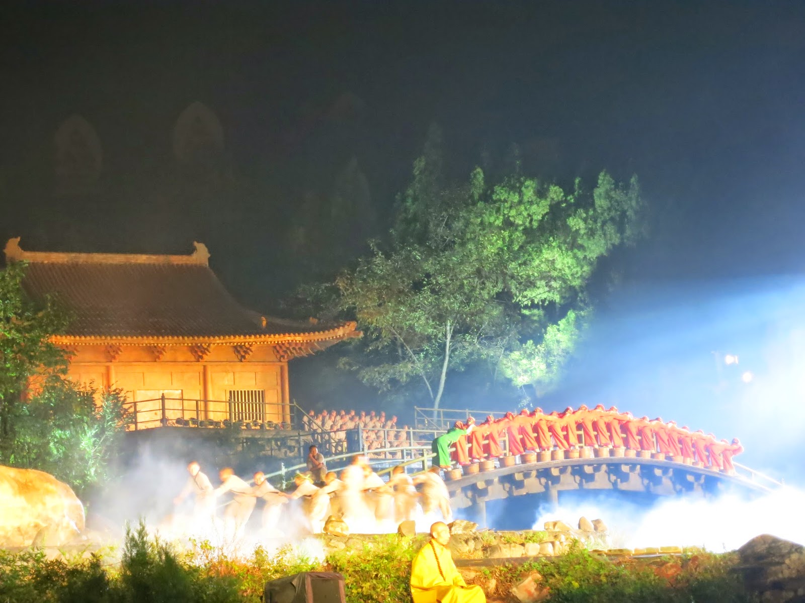 2014第十屆中國鄭州國際少林武術節遊記(五) ------ 音樂‧禪宗https://www.youtube.com/watch?v=twDshRmzeD0 (使用的是網路上別人拍的影片,因為我現場拍得真的畫質很不好,都是一片黑壓壓的)少林寺走馬看花的看了一會,我接到了隨團翻譯非常慌張的電話急叩。 我們要立刻出發趕去下一個活動據點,要來看這個號稱世界最大的山水實景音樂劇場,花費3.5億人民幣的大型音樂劇。 過去我沒有什麼藝文涵養,所以並沒有看過幾場音樂劇。因此也很難說這場音樂劇到底好還是不好, 但是光現場表演空間就有三平方公里寬,號稱最高的山頂高度就有一點四公里高...我相信就相當的值回票價吧? 當我們搭著車抵達會場的時候此時天色已經暗下來,並且天氣變得更冷了。隨著下午的興奮退溫,我們已經略有些疲態。 來到會場我們拿著翻譯給我們的票,開始去找C區到底在哪裡?想趕緊就定位坐下來休息。 雖說是佛門清境地,但是終究這裡也是一個風景區,我們看到眼前的攤位掛著「台灣香腸」的攤子,真的是無比的幽默。 雖說是台灣香場,但是後來買了一隻吃發現一點也不台灣更不香腸。 怎麼說呢?吃起來比較像是熱狗,沒有台灣香腸有的嚼勁與風味,但是聽說在大陸這東西很夯。 不過會場裡面可是禁止飲食的,所以我們只能先忍著嘴饞的衝動先進去看表演。 來到安排到的座位,這裡的舞台是露天的,因此早上的雨已經把座位弄得非常濕,工作人員很好玩,他們的對應方法是要我們一人拿一張塑膠布,就這樣將就的擺在坐位上湊合的看... 眼前是舞台?我只能說他們做的真的很大。觀眾區與所謂的舞台中間隔著一條造景河道,而眼前所有的山、水、房樓、石壁,甚至後面的月亮與整個模擬少林寺的房屋結構通通都是佈景啊! 這真的也太大成本與手筆了吧?因為肯定的就是這個舞台只能用在這個劇當中,可見他們對於想要推廣文化下了多麼重的手筆。 這部劇當中並沒有引述熱血的「十三棍僧救唐王」的故事也沒有使用悲壯的「少林寺被毀寺」的劇情,他們使用的就是單純用禪的概念 貫徹了整個音樂劇。 水、木、風...分別代表不同的禪境,可以輕快也可以和緩更可以用禪打出武學。因此假如只想看滿滿的武術動作的朋友可能會有些失望,因為他們這裡的重點訴求不是一直武武武!而是要告訴你少林寺終究是禪宗發源地,因此禪宗才是他們最想凸顯的,因為禪武也僅僅只是禪的一部分。 我們所坐的位置並非是正中央的貴賓席座位,因此都只能看「一半」,不過光看他們又唱又跳並且後來搭配聲光音效,甚至連動物都訓練得宜羊都時時在在的擺在舞台上做為一部份的劇情呈現模式上來說,對這些遠道而來的各國來賓已經物超所值了。 真的可惜相機不適合夜拍功能所以並沒有辦法把很多非常珍貴的畫面拍下來,例如他們還大膽的讓武僧穿上LED衣,搭配昏暗的夜景藉著閃光讓人感覺到武僧動作一下出現一下消失,甚至變成連體,非常有趣。 這中間最高潮的應該是突然有兩個穿著發光衣的武僧突然從我們觀眾席這邊的高台上吊著鋼絲往舞台中間飛去,根本就是「臥虎藏龍」的畫面重現,霎時大家都發出讚嘆的聲音,因為感覺上真的很唯美。 雖然當下有拍下來,可是看起來活脫像兩隻螢火蟲在天空飛,所以決定還是不分享了。 這場音樂劇真的做到了「以天為幕、以地為景」的感觸,非常的壯闊。不過劇情上我總覺得並沒有讓人這麼如此的感動。 跟我們一起隨團的媽咪有看過杭州西湖的舞台劇,他也說就是差了那一點... http://www.czslyydd.com/ 這是禪宗少林音樂大典的官方網站,有興趣想了解更多的朋友可以去看看。 到底他們這樣的設計與安排符不符合禪宗精神?亦或只是個商業手法? 我覺得見仁見智,唯一確定的是以一個主辦單位要舉辦一個邀約「國際」的活動,他們的確讓我們經由這麼一趟清楚了解到什麼是少林寺,什麼是少林寺現在想傳達的精神,鄭州對於推動武術節的用心並非只有侷限單一個人的利益,而是可以連同協助整個觀光產業的帶動。 這點上真的值得我們學習與省思的。 (此為示意圖,因為當下我們處在一個拍了看不透外面的情況) 結束啦!大家開心的上了車,我們準備搭車回飯店了。 此時,我們碰上了超大濃霧!阻礙了我們回去的路。 雖然我們不需要繞山路,但是濃霧也造就所有車隊只能一台跟著一台緩慢的滑動著。 待過陽明山四年,濃霧算啥?我們山上也常有啊!不過最多了不起山腳到山頂都是濃霧也不過幾十公里吧... 【假如是幾百公里的濃霧呢??????】 是的,百公里為單位的濃霧就真的很恐怖了,我突然整個想起史蒂芬金的恐怖電影「迷霧驚魂」的橋段, 在這等濃霧下,車隊就算有警車開道疏通,但是回去也花了我們整整... 4小時 沒有看錯,四小時。 我們花了四小時才回到住的地方,下午的興奮與剛剛的感觸早就隨著一路緩慢並且空調時開時停的車程給磨光了。 趕緊洗澡睡覺啊!! 下達了這個指令,我們想起明天一早就要比賽了, 只希望眼前的孩子們體力可以來得及恢復。 |