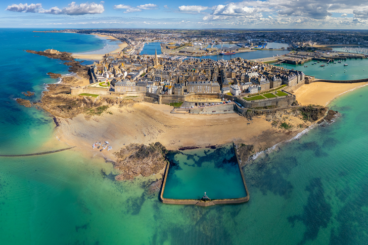 聖馬洛(Saint Malo)的老城區,自 12 世紀以來一直掩映於城牆之後。堅實的花崗岩城牆宛如一艘石船,巍然屹立於大海之上,守護著港口和海灘,獨特的景觀與其赫赫有名的歷史彼此襯托相互輝映!(下圖載自網路)