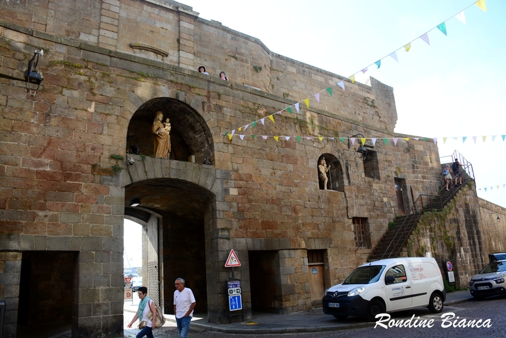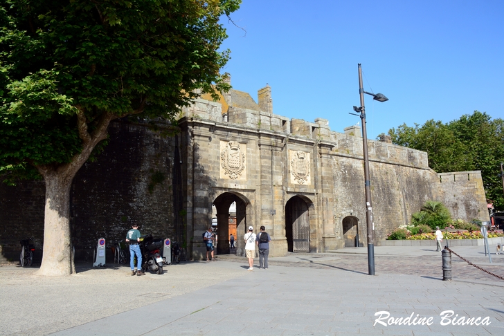 櫥窗中陳列著充滿布列塔尼特色(布列塔尼條紋)的商品,過了這個村兒,就沒這個店兒! 大門 La Grande Porte 「大門」,是通往聖馬洛最古老的門戶,屬於中世紀城牆的一部分。昔日乘船而來的人們,即由「大門」進入聖馬洛城區。氣勢雄偉的大門,展現了此地典型的建築風格,與周圍的城牆渾然一體,為壯麗的海岸線和波光粼粼的英吉利海峽提供了絕佳的背景。 「大門」外側 「大門」內側裝飾著精巧的石雕和徽章,講述著這座城市的悠久歷史。 登上城牆,返身俯瞰是古城櫛比鱗次的美麗建築;眺望城外,是桅杆林立的聖馬洛港口。漫步於寬闊壯觀的城牆步道,聖馬洛城裡城外風光令人目不暇給,今古交錯氣象萬千!