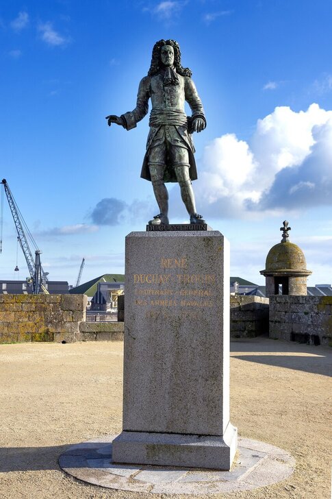 聖路易棱堡寬闊的平台上,矗立著聖馬洛最赫赫有名的海盜(私掠)船長——勒內杜蓋特魯安的雕像。這位曾經叱吒風雲的海盜船長,為法國出生入死、抵禦強鄰入侵,甚至在海上獲取暴利。對於敵對的國家而言,他肯定是惡名昭彰的海盜;但對於法國來說,他絕對是戰功彪炳的蓋世英雄。因此,他在聖馬洛擁有這光榮的一席之地,成為海盜之城的最佳見證。但觀世上的海盜能被立碑紀念的,聖馬洛恐怕是絕無僅有!