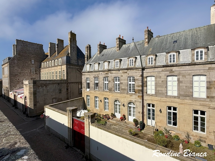 船主之家 Les Maisons d’armateurs 聖馬洛是繁華一時的港口城市,城牆環繞,眾多居民─船主、水手和工匠─都面向大海而居。這些建築建於 18 世紀,由富有船主和商人建造,以其高聳的花崗岩立面而聞名,見證了這座海盜城輝煌的過去。在聖路易棱堡和聖菲利普(Saint-Philippe)棱堡之間,城牆沿著「海盜之家」(Maisons de Corsaires)的壯觀線條延伸。著名的海盜船長羅伯特·敘爾庫夫曾居住在迪南門附近的其中一棟。 著名的私掠船房——阿斯費爾德宅邸(Hôtel d’Asfeld),矗立在聖路易棱堡附近的城牆內側,是業餘船長 Magon de la Lande 的住宅。(下圖左有三根煙囪的建築)