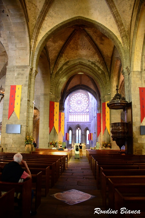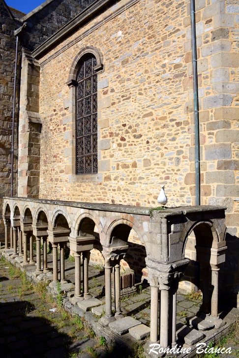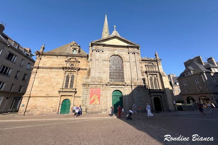 為了配合下午聖米歇爾山的參觀時間,聖馬洛的參訪被拆成早晚兩個時段。上午的行程到此告一段落,當然是意猶未盡!盤算著傍晚回來時再逛逛市區、漫步城牆… 然而,當我在烈日下完成聖米歇爾山的攀登及參觀之後,傍晚再度來到聖馬洛時已雙腳疼痛、疲憊不堪!縱然在晚餐前還有一些時間,卻只想坐下來歇歇腿喝杯咖啡,完全無力再爬上城牆了!無奈的是,連喝杯咖啡的時間都有點尷尬,最後是拖著沉重而蹣跚的步伐拜訪了聖馬洛主教座堂。 聖馬洛聖文森主教座堂 La cathédrale Saint-Vincent de Saint-Malo 聖馬洛主教座堂在 1145 至 1790 年間是教區的所在地,供奉 4 世紀初在西班牙薩拉戈薩殉道的聖文森(Saint-Vincent)。 在聖馬洛成為主教轄區之前,大教堂原址上有一座小修道院,供奉聖馬洛。1145 年,主教沙蒂永將教區自阿萊特遷至聖馬洛,修道院教堂經過改建,成為一座中等規模的羅馬式教堂。之後的幾個世紀中,教堂陸續增建,規模逐漸擴大。1772 年,教堂正面採用新古典主義風格重建,外牆覆以中世紀磚石結構。1858 年,在塔頂建造了一座布列塔尼風格的大型鏤空尖頂。直到 1860 年,十字架被安放在新哥德式尖頂上,歷時 7 個世紀的教堂建築終告完工。 然而,在 1944 年二戰末期的解放戰爭中,大教堂與聖馬洛的其他部分一樣遭到嚴重破壞。經過漫長的修復,如今教堂成為 12 至 21 世紀神聖藝術的縮影。 教堂內安放聖馬洛首任主教沙蒂永聖髑的 12 世紀石棺。此外,「加拿大發現者」雅克卡地亞及「私掠船長」杜蓋-特魯安也安葬於教堂中。