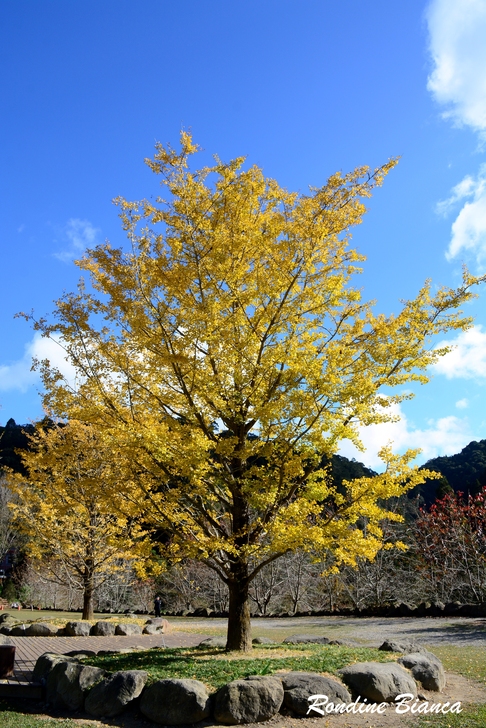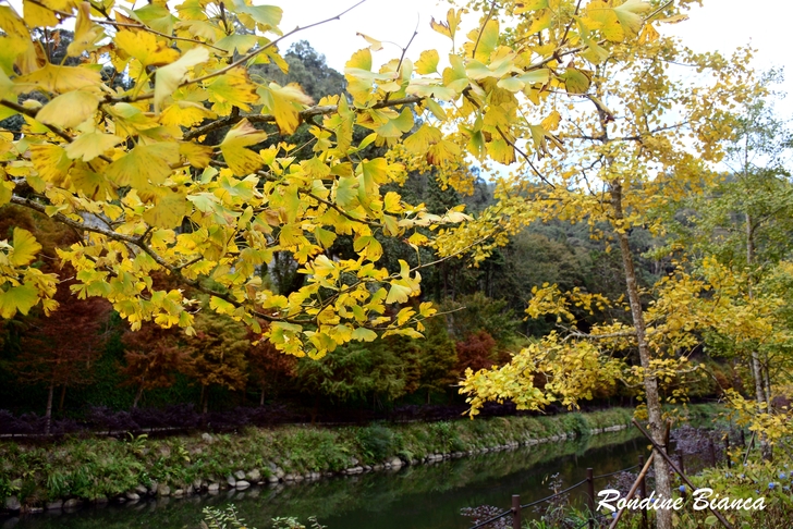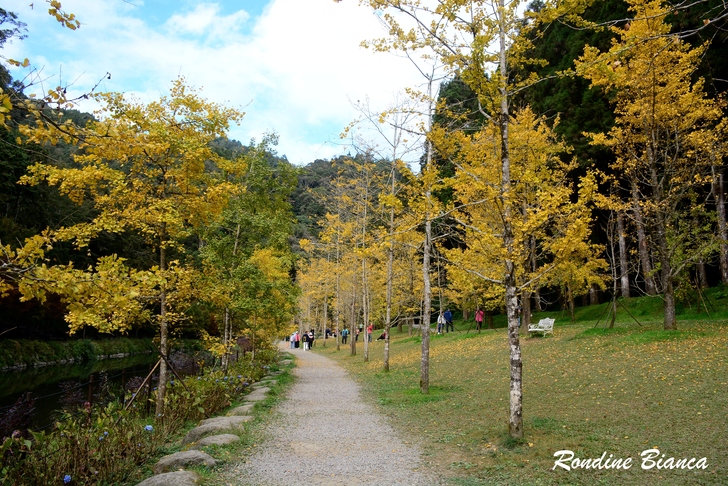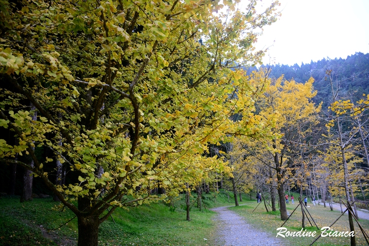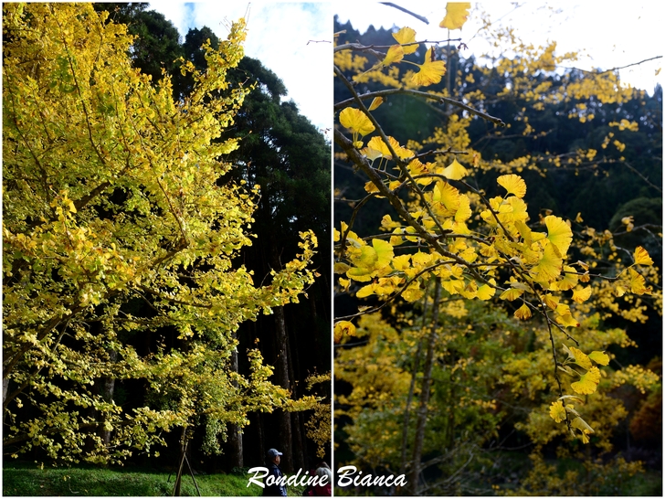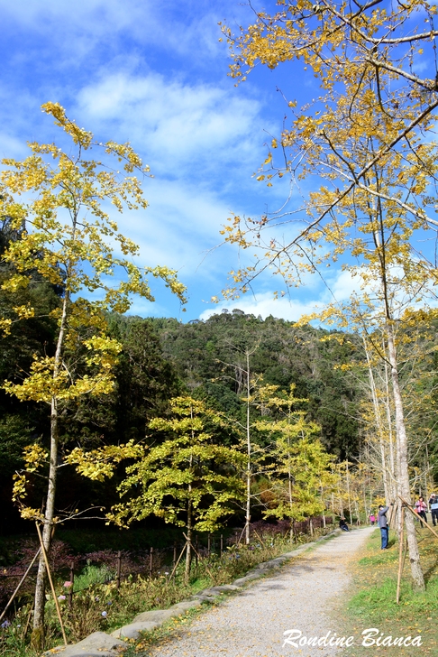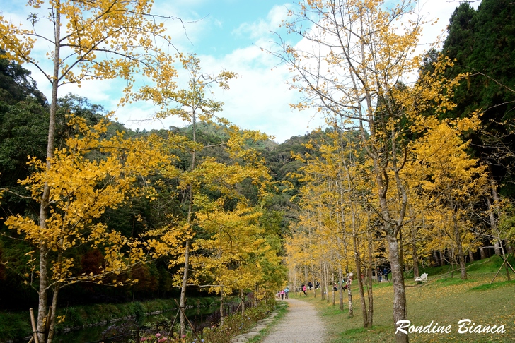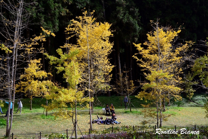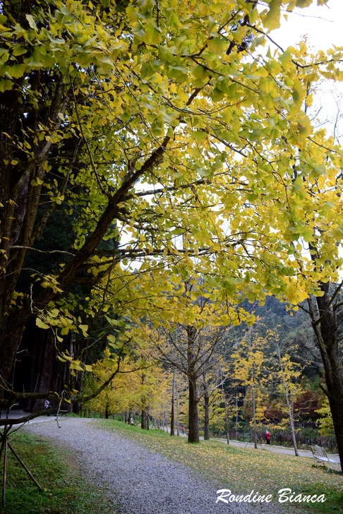 一樹繁華的銀杏閃耀動人心魄的金黃,蓊鬱的綠柳杉林是最堅實的屏障,藍天白雲是最稱職的背景。奇妙的自然賦予大地美麗多姿的季節色彩,令人動容!令人讚嘆!