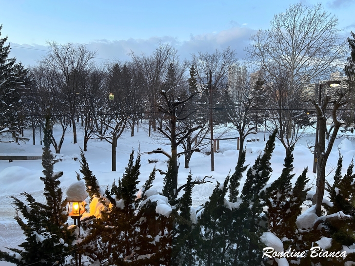傍晚在溫柔的天光中,告別此行的第一個冰天雪地—千歲北方雪上樂園。 驅車前往札幌市區,原本一小時的車程,整整花了兩個小時才抵達。只因為堆得像一座座小山的積雪綿亙在道路兩側,硬生生占去一個車道,塞車在北海道的冰雪季節便成為無可避免的日常。如此一來,我們的札幌市區觀光也只能「行車經過」了,幸好此行早有「坐車賞雪」的心理準備,倒也安之若素! 白雪覆蓋的城市變得純淨而美麗,站在飯店房中眺望窗外的世界,在溫暖燈火映照下是如此靜謐安詳。終於來到北海道,看著地上和屋頂都堆積著白雪的城市雪景,感覺如夢似幻,尤其是房中的暖氣熱得人需要開窗透氣,窗外這片冰雪世界就更加地不真實了! 2026/02/04 次日清晨,坐在飯店的餐廳享用豐盛的早餐,窗外就是一片夢幻的雪景。雪地中的喬木樹葉落盡疏林如畫,松柏之類的針葉樹上堆積著厚厚的白雪,活脫脫就是一棵聖誕樹,想起那年趕赴歐洲的聖誕市集,當時缺的正是眼前這片迷人的雪景啊! 下榻的飯店坐落在貫穿札幌市區的「豐平川」旁邊,河道兩側被厚厚的積雪所覆蓋。所有汙濁與混亂盡皆冰封雪藏,整個城市的色調變得簡單而純粹,白雪不僅淨化更美化了城市。清晨陽光燦爛,映照得白雪閃耀奪目,河川因它而冰清動人,城市因它而潔淨美麗,佇立窗前,貪享這片刻的美好! 車子沿著豐平川旁邊的道路行駛,整個河道兩側、路肩及橋上都堆積著厚厚的白雪,鏟雪車在此看起來渺小無力,根本是杯水車薪。在近距離接觸中,尤其能感受白雪世界所帶來的視覺震撼! 雪道之美 行道之難 北海道的冬季嚴寒,一波又一波降下的大雪逐漸堆積,所有人力物力都無法與之對抗,雪堆、雪牆、雪道…於是成為城市景觀的一部分。面對如此景象,瞠目結舌之餘不禁傻想,到了春天融雪之時,這個城市會不會淹大水呢?! 在熱帶生活的人們眼中,雪,是美麗與浪漫的象徵;但對於生活在其中的人們而言,雪,或許是生活中無可避免的搏鬥與艱辛,他們每天的開門七件事,恐怕得多一件—剷雪清道! 坐在舒服的遊覽車中,看著窗外一幕幕迎面而來又飛馳而去的風景,作為遊客,慶幸自己得以免於下雪之苦,單純享受雪景之美。但看那些橫亙屋前、簇擁道路的雪堆綿延不盡,行車不免壅塞,步行如履薄冰,而我只消坐在車上,好整以暇享受眼前這些難得一見的風景,即使堆積已久的白雪已見污痕疲態,但這一切在我眼裡依然是美、依然是新奇! 枯藤老樹 白雪壓枝 冬日的樹木葉子落盡白雪壓枝,黝黑怒張的樹幹堆疊著柔白細雪,黑白相襯、剛柔並濟之間更顯蒼勁颯爽,而針葉樹上的白雪猶如糖霜,洋溢溫馨可人的聖誕氣息。 這是我所迷戀的北國冬日勝景,陽光下尤其賞心悅目,猶如流動的畫卷般令人目不暇給!隔著車窗拍照效果雖難令人滿意,卻依然一次次癡癡地按下快門,為自己留下珍愛的記錄。 北海道之行的頭一天,沒有偉大景點,單純捕捉城市街廓、行道樹林千變萬化的雪景,記錄自己與白雪大地初相遇的驚喜與震撼。於我而言,此行心之所繫唯有白雪…白雪…白雪…,而這頭一天,已然獲得大大的滿足與感動! 敬祝格友們 馬年康泰大吉 新春萬事如意 |
