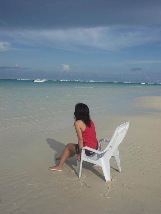 長灘 (Boracay)這個點,兩年多前對於台灣大多民眾還是默默無聞的小島時克莉絲就想去(因為之前克莉絲看過一些資料知道這島對歐美人士遠離塵囂之地。)當時台灣交通無直航班機(需轉機), 所以克莉絲就選擇到宿霧度假。去年歌手梁靜茹在此結婚,此點就突然爆紅,成為台灣旅遊的熱門點... 目前台灣直飛的班機是到 KALIBO 機場 離 Boracay 還要搭 1 個多小時的車程 後再坐船 10來分鐘才會到目的地... 看到綿延長又白的沙灘,與湛藍的天空海色相呼應,一雙已熟悉都會五光十色絢麗色彩的眼,突然對簡單的白與藍交織營造的美,如一見鍾情般的就被深深牽引,捨不得閉上雙眼,其實這樣的感覺在上次宿霧之旅中拜訪 BOHOL BEACH 中就驚豔過, Boracay 白沙灘比BOHOL BEACH要更長些... 因為是台灣的熱門旅遊景點,小小的島上黑髮黃皮膚的台客屬遊客中的大宗,走在商店大街中,除了賣紀念品的小販是操英文口音的當地人,沿路逛街聽到儘是熟悉的國語或台語.... .. 逛著逛著克莉絲突然有在台灣墾丁大街的fu.... . 。