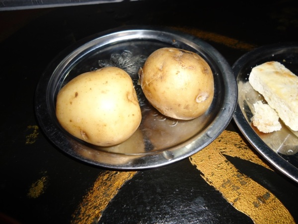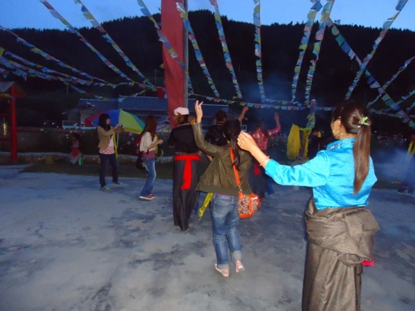 當日晚餐在當地導遊的鼓吹下,參加自費 RMB180 的 走入藏家體驗的風味餐,行程單上有此自費項目,看行程單所寫烤全牛(羊),喝酥油茶,青稞酒..克莉絲對於這一餐期待很大,其實飯店也是有供晚餐的,我們是吃晚餐前先吃這餐,導遊在遊覽車推此自費行程,本團約15人只有7人自費參加,當地導遊是名藏族姑娘,人長得還不錯就是脾氣不太好,以從事服務業的角度來看,真的的不合格,其實餐費實際RMB 150... 當時收費時她說司機要拉車接送要體驗藏族風味餐團員,所以參加的人每人付 RMB 30 給司機,車到藏民家,克莉絲處於暈車狀態完全沒啥味口,導遊提醒多喝一些酥油茶可緩解高山症的狀況。進入藏家吃飯手續還不少.. 用藏家水洗手... 還要用煙燻一下,藏家房舍燈光昏暗,被引導進入藏家用餐的房間,活潑的藏族青年與來賓玩游戲,介紹藏族食物...當食物端出來....這風味餐也未免太陽春了吧 ??? RMB180 ( 約 NT900 在台灣可吃上一頓有品質的好晚餐) 這兒不論是芼牛肉還是羊肉都硬到 難以咀嚼,羊肉湯因為放中藥材還算好喝,只有猛喝酥油茶,酥油茶的口感就像我們用低脂或脫脂奶泡的奶茶(奶味很淡的奶茶),因為是熱熱的喝起來比較舒服... 暈車不適的感覺有變的比較好.. 藏族的菜都黑黑的看起來就不新鮮讓人很沒食欲,主餐水煮馬鈴薯兩粒... 青稞餅是冷的很難吃...另一碗青稞做成類似我們的板條... 也是很難吃...。沒有一樣食物可通過克莉絲的嘴可得到讚賞的。這CP 值落差很大的藏家體驗的風味餐,克莉絲強列舉反對牌請想嘗試的格友三思 。(PS也不知是我們拜訪的這一家藏家是否不善料理...? 真的是很不可口又貴。 在台灣拜訪原住民部落也有體驗風味餐活動,相較之下台灣 原住民風味餐比藏族餐好吃10倍.. 可參考 "朵優的狩獵之旅" 的貼文,)餐後與藏族人一起跳舞。結束令人失望的體驗的風味餐活動,我們在藏家停留應有1個半小時以上,照理導遊合理處理方式將不參加體驗的風味餐活動團員先送回飯店用餐,再派車接我們這行人回飯店(畢竟多收我們 RMB30 交通費),沒想到導遊居然讓其他人餓肚子等我們,引發另一半的團員不滿與這個菜鳥導遊彼此吵得不可開交也見識到大陸人吵架的本領 (克莉絲在第三日要飛回成都前,忍不住問藏族姑娘從事導遊這行多久 ? 年輕的姑娘回答 2年... 會如此問是因為覺得這藏族姑娘處事上不圓融也太悍了些,有些狀況處理也不妥。只有拍拍她的肩以老練的口吻說 : 顧客百百種,EQ 很重要的,若最難應付的顧客都能應付好,就沒啥困難啦 !