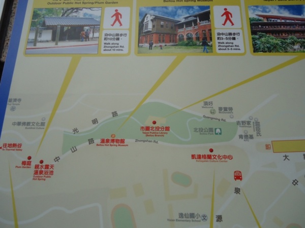 第二站到北投文物館 ( 地址: 北投區幽雅路32號 ) , 從拉麵店沿著 溫泉路銀光巷方向走 約 20 多分鐘, 看到新的西式建築:麗憘溫泉酒店沿其酒店周圍走, 北投文物館就在 麗憘溫泉酒店的隔壁 原路再走下來 到 第三站 地熱谷 : 其位置在滿來溫泉拉麵 過街的對面,克莉絲小時後去地熱谷那時還能煮蛋,地熱谷改建後鋪上好走的步道,地熱谷只有純觀光,兒時用硫磺溫泉煮蛋的樂趣都也只能成為回憶。 第四站: 露天溫泉 : 一路上都有步道讓遊客走 ,可能是天氣也不是很冷加上不是假日沒什麼遊客在露天溫泉處玩水(相較於宜蘭礁溪露天溫泉,克莉絲覺得礁溪露天溫泉規畫的比較好 )。