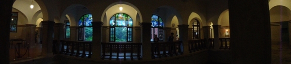 第五站 梅庭(北投公園旁) ,梅庭建於1930年代末,曾是「一代草聖」于右任先生的避暑別館,現為市定歷史性建築的古蹟 (日式的建築),裡面陳列出于右任的書法作品。 第六站 北投溫泉博物館 (地址: 北投區中山路2 號 ),樓上展示古早北投那卡西文化中不可缺的月琴,陳列的月琴的表面被圖鴉各種有趣圖案,讓歷史的文物展現新潮風貌。樓下就是日據時代大家泡溫泉的池子,仿歐式的薔薇窗色澤豔麗的窗戶,讓整個色澤暗淡的溫泉池亮麗了許多。