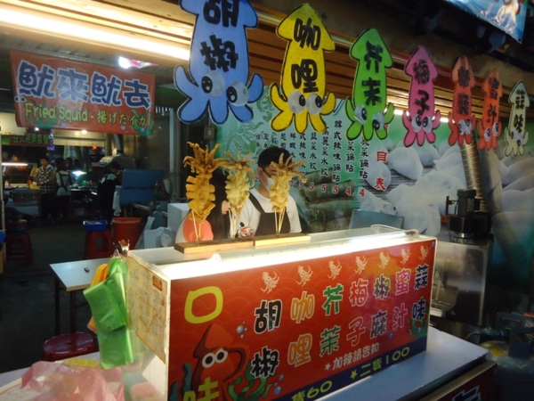 晚餐到花蓮最大的自強夜市覓食,整個夜市其實規模不大。愛喝現打果汁的克莉絲當然要點果汁囉! 夜市有名的法式棺材板當然也是要嚐一下,經過炸鱿魚店點了一份咖哩口味,可能很久沒吃炸物,覺得不錯吃。夜市內平價牛排店不少,不太吃牛肉的克莉絲不想吃太多肉,終於看到一家豐富食材的關東煮,還有半棵白菜可選,吃完關東煮,真得覺得晚餐吃太多,從夜市慢慢地走回民宿休息。