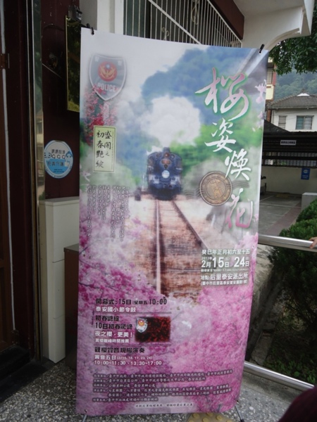 走出派出所往前走沿路有些櫻花,還看到日式建築水利會的的招待所,庭園是個開放空間許經過的遊客都會進去晃晃。 又到附近的舊鐵道走走,本以為是廢棄的鐵道,後來聽當地的警察說,偶爾鐵道會有觀光火車經過,克莉絲想當日應該無火車經過,否則一堆在鐵軌上行走的遊客,豈不太危險。派出所警察先生與我們閒聊告知這邊花最美的時間約在2月下旬。喜歡賞花的格友 2月下旬后里泰安派出所也是選項之一ㄛ。
